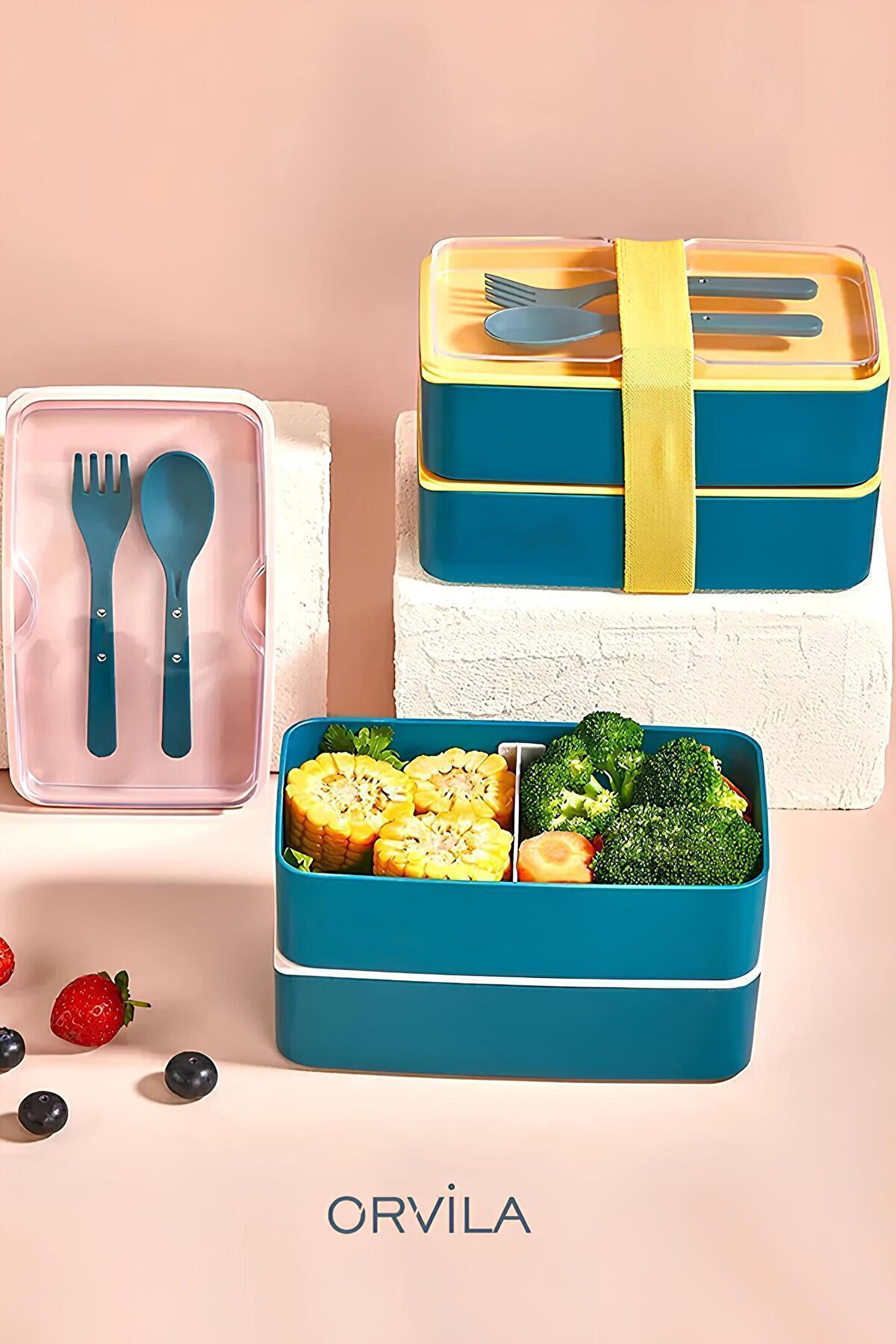 Orvila 2 Kat Yemek Saklama Kabı Beslenme Kutusu Seti - Sporcu Diyet Öğrenci Fitness Okul Işyeri Sefer Tası