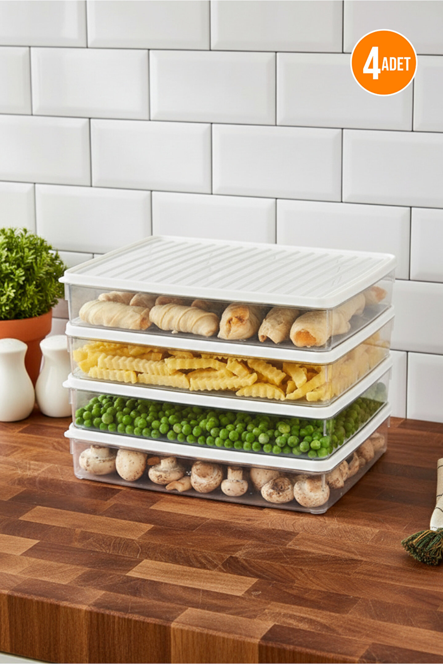 Şeffaf Gıda Saklama ve Buzdolabı Düzenleme Kutusu – 4’lü Set; Buzdolabı düzenini korumanıza ve gıdalarınızı uzun süre taze tutmanıza yardımcı olur; Şeffaf gövdesi sayesinde içindekileri kolayca görebilir, aradığınız ürünü zahmetsizce bulabilirsiniz; Hava geçirmez kapak yapısı, meyve, sebze, kahvaltılık ve yemek artıkları gibi gıdaların tazeliğini korur; İstiflenebilir tasarımı sayesinde buzdolabında maksimum alan tasarrufu sağlar; Dayanıklı, BPA içermeyen, sağlığa zararsız plastikten üretilmiştir; Kolay temizlenebilir yapısı ile hem elde hem de bulaşık makinesinde yıkanabilir; Sebze, meyve, kahvaltılık, sos, çerez veya yemek saklama amacıyla çok yönlü kullanım sunar; Modern gri kapak detayıyla mutfak estetiğine uyum sağlar; Ev, ofis, piknik veya kamp kullanımı için idealdir; Dondurucuya ve buzdolabına uygundur; Pratik, hijyenik ve düzenli bir saklama çözümü arayanlar için mükemmel bir seçenektir.; Ölçüsü 27,5x22 cm dir.;