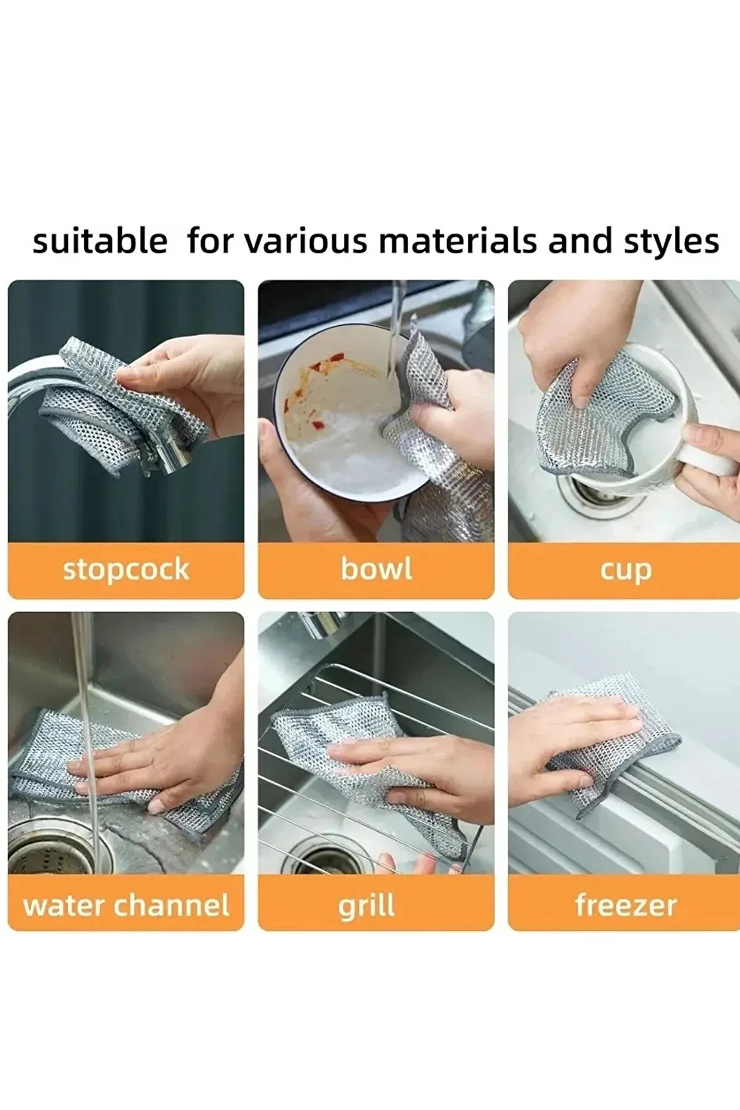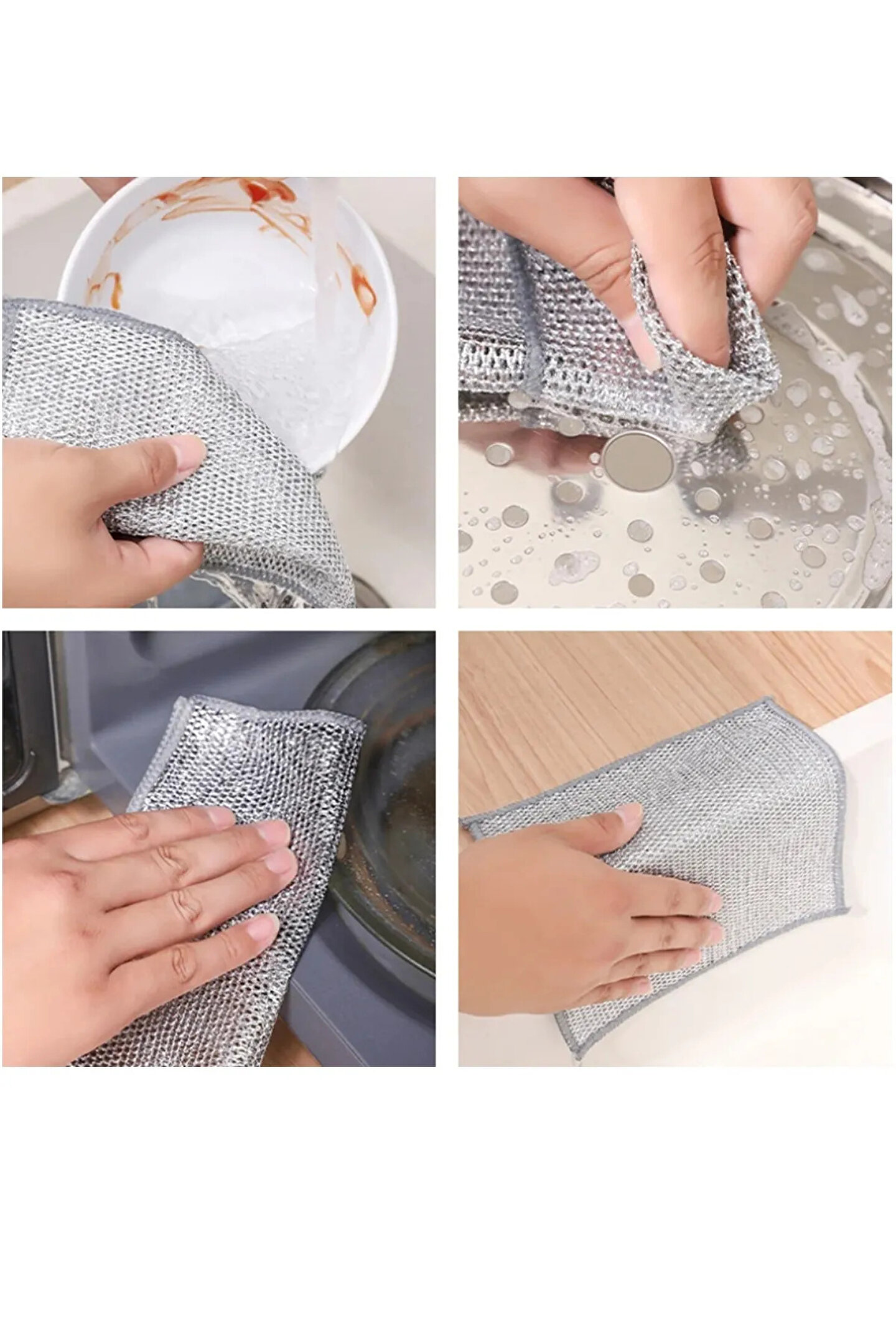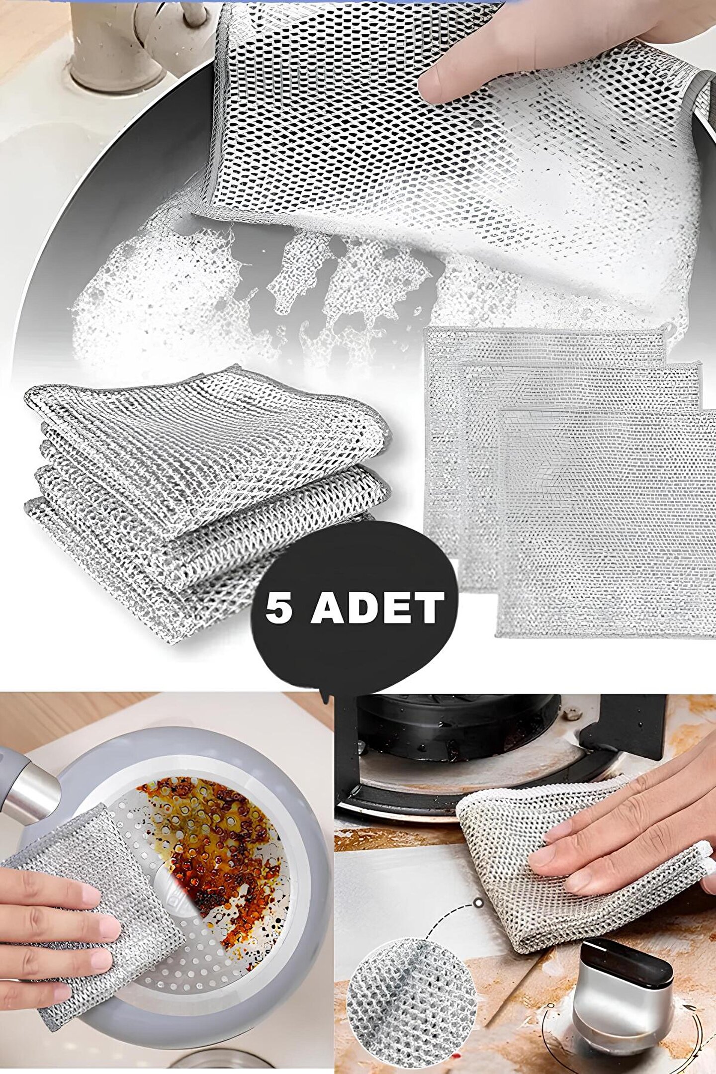 Çift Katlı Pratik Çok Amaçlı Paslanmaz Telli Bulaşık Bezi Kir Pas Sökücü Sihirli Temizlik Bezi Çift Kat 5 ADET Boyutu: 20x19.5cm ;