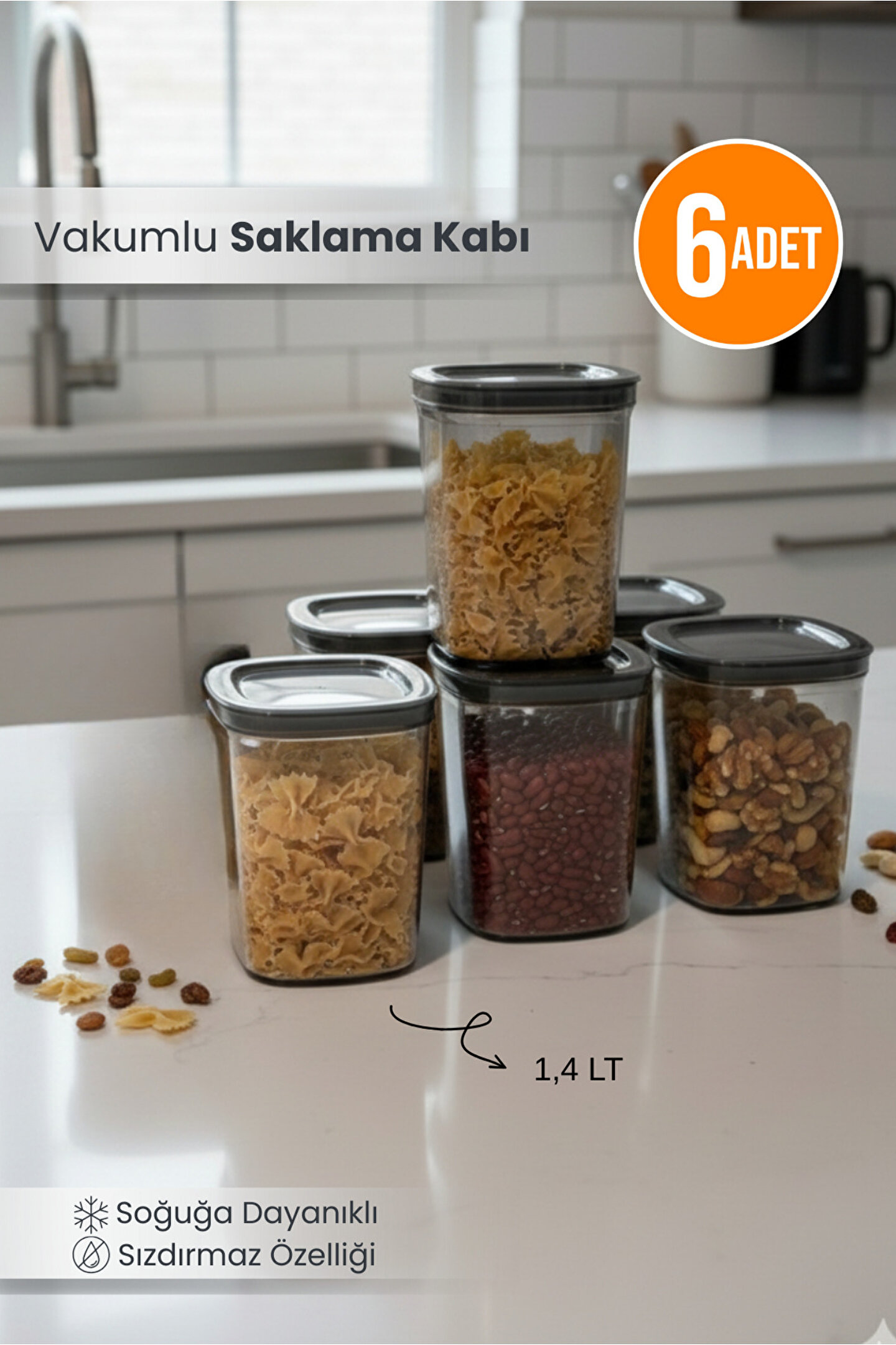 Orvila 6lı Clario Sızdırmaz Saklama Kabı Vakumlu Erzak Kabı 1,4 L