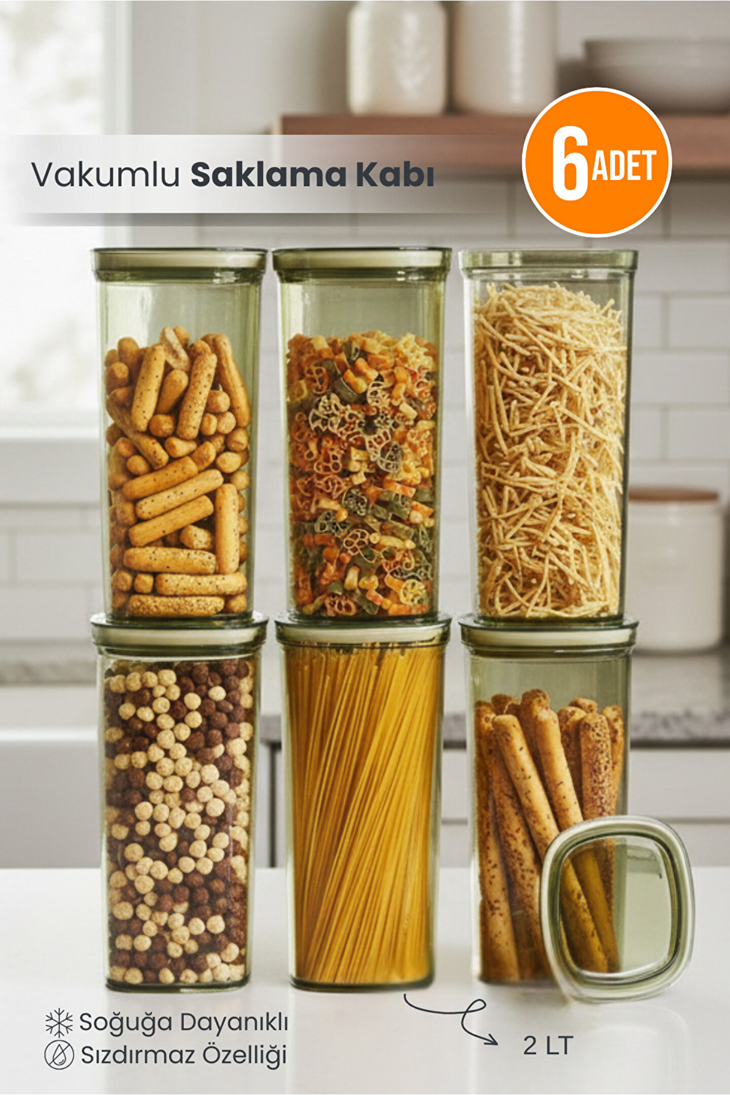 Orvila 6lı Clario Sızdırmaz Saklama Kabı Vakumlu Erzak Kabı 2L