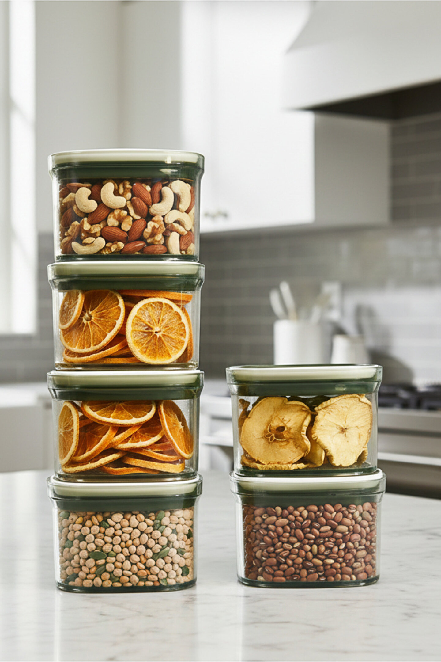 Saklama kapları; hava geçirmez ve sızdırmaz kapak sistemi sayesinde kuruyemiş, bakliyat, kahvaltılık ve atıştırmalıkları uzun süre taze tutar; hijyenik cam yüzeyi sayesinde gıdalarla tamamen güvenli temas sağlar ve koku yapmaz; modern kare-oval formuyla mutfak tezgâhında şık bir görüntü oluşturur; düzenli depolama için dar alanlara dahi rahatlıkla sığan ergonomik tasarıma sahiptir; saydam cam gövde içindeki ürünleri kolayca görmenizi sağlayarak kullanım kolaylığı sunar; kapak kısmı sağlam oturan özel contalı yapısı ile nemi engeller ve ürünlerin raf ömrünü uzatır; ceviz, fındık, badem, kaju, makarna, bakliyat, kahve çekirdeği, kuru meyve ve granola gibi tüm kuru gıdaların saklanmasına uygundur; ofis, mutfak, kiler ve restoranlarda düzen sağlamak için ideal depolama çözümüdür; ısıya, çizilmeye ve darbelere karşı dayanıklı cam yüzeyi uzun ömürlü kullanım sunar; minimal ve modern tasarımı ile her mutfak dekorasyonuna uyum sağlar; tezgâh üstü kullanımda estetik bir görünüm oluştururken dolap içlerinde de maksimum düzen sağlar; günlük kullanım için pratik ve kolay temizlenebilir yapısı ile kullanıcı dostudur; sağlıklı yaşamı destekleyen cam malzemesi plastik kokusu olmadan doğal saklama imkânı sunar; evinizde hem estetik hem fonksiyonel bir düzen yaratmak isteyenler için ideal bir seçimdir.; Ölçüsü 11,5x8 cm dir Elde yıkayınız bulaşık makinasına uygun değildir.;