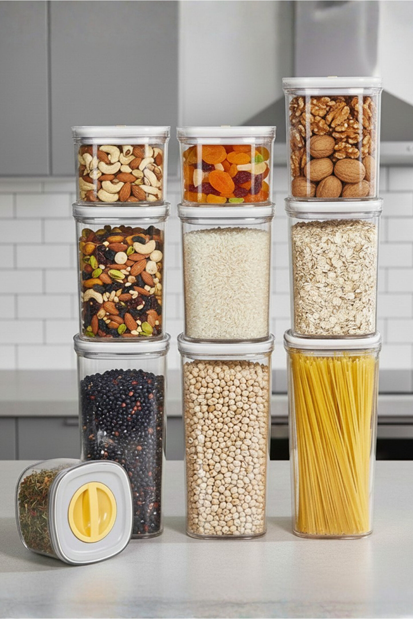 Saklama kapları; hava geçirmez ve sızdırmaz kapak sistemi sayesinde kuruyemiş, bakliyat, kahvaltılık ve atıştırmalıkları uzun süre taze tutar; hijyenik cam yüzeyi sayesinde gıdalarla tamamen güvenli temas sağlar ve koku yapmaz; modern kare-oval formuyla mutfak tezgâhında şık bir görüntü oluşturur; düzenli depolama için dar alanlara dahi rahatlıkla sığan ergonomik tasarıma sahiptir; saydam cam gövde içindeki ürünleri kolayca görmenizi sağlayarak kullanım kolaylığı sunar; kapak kısmı sağlam oturan özel contalı yapısı ile nemi engeller ve ürünlerin raf ömrünü uzatır; ceviz, fındık, badem, kaju, makarna, bakliyat, kahve çekirdeği, kuru meyve ve granola gibi tüm kuru gıdaların saklanmasına uygundur; ofis, mutfak, kiler ve restoranlarda düzen sağlamak için ideal depolama çözümüdür; ısıya, çizilmeye ve darbelere karşı dayanıklı cam yüzeyi uzun ömürlü kullanım sunar; minimal ve modern tasarımı ile her mutfak dekorasyonuna uyum sağlar; tezgâh üstü kullanımda estetik bir görünüm oluştururken dolap içlerinde de maksimum düzen sağlar; günlük kullanım için pratik ve kolay temizlenebilir yapısı ile kullanıcı dostudur; sağlıklı yaşamı destekleyen cam malzemesi plastik kokusu olmadan doğal saklama imkânı sunar; evinizde hem estetik hem fonksiyonel bir düzen yaratmak isteyenler için ideal bir seçimdir.; Ölçüsü 15,5x11,5 cm dir Elde yıkayınız bulaşık makinasına uygun değildir.; 1,4 L