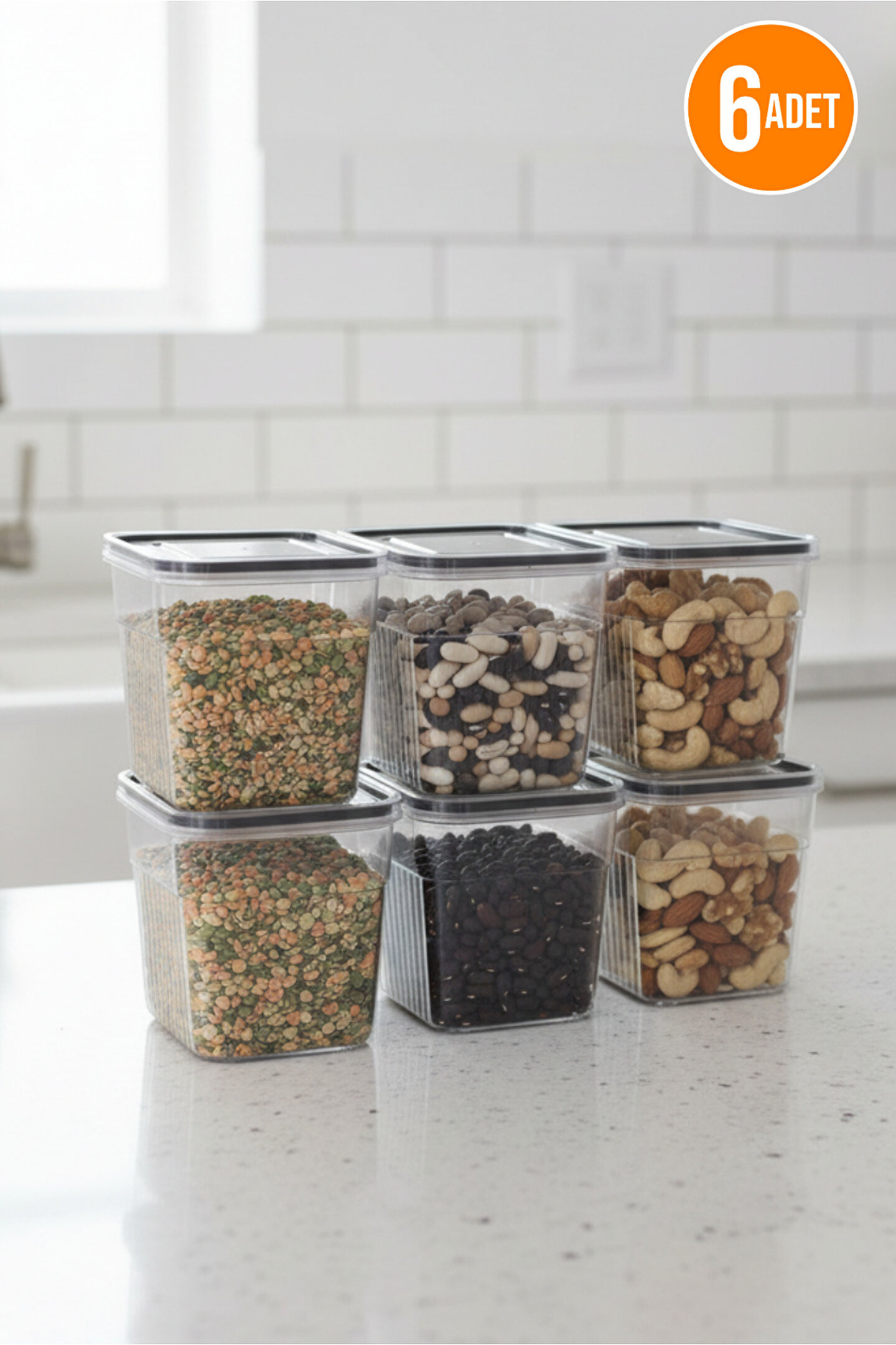 Modern mutfaklar için ideal çözüm olan şeffaf kapaklı saklama kutusu seti; kuru gıdaları, bakliyatları ve atıştırmalıkları düzenli ve hijyenik şekilde saklamanıza yardımcı olur; BPA içermeyen yüksek kaliteli plastikten üretilmiştir; hava geçirmez kapak yapısı sayesinde gıdaların tazeliğini uzun süre korur; şeffaf gövde tasarımı ile içeriği kolayca görebilir, mutfakta zamandan tasarruf edebilirsiniz; fasulye, mercimek, nohut, fındık, badem, kaju, kuru meyve gibi pek çok ürünü saklamaya uygundur; minimalist tasarımı sayesinde mutfak tezgahında, dolapta veya buzdolabında estetik bir görünüm sağlar; istiflenebilir yapısı sayesinde yerden tasarruf ettirir; kolay temizlenebilir ve bulaşık makinesinde yıkanabilir; dayanıklı ve uzun ömürlü malzemesi ile mutfağınızda düzen ve şıklığı bir arada sunar.;