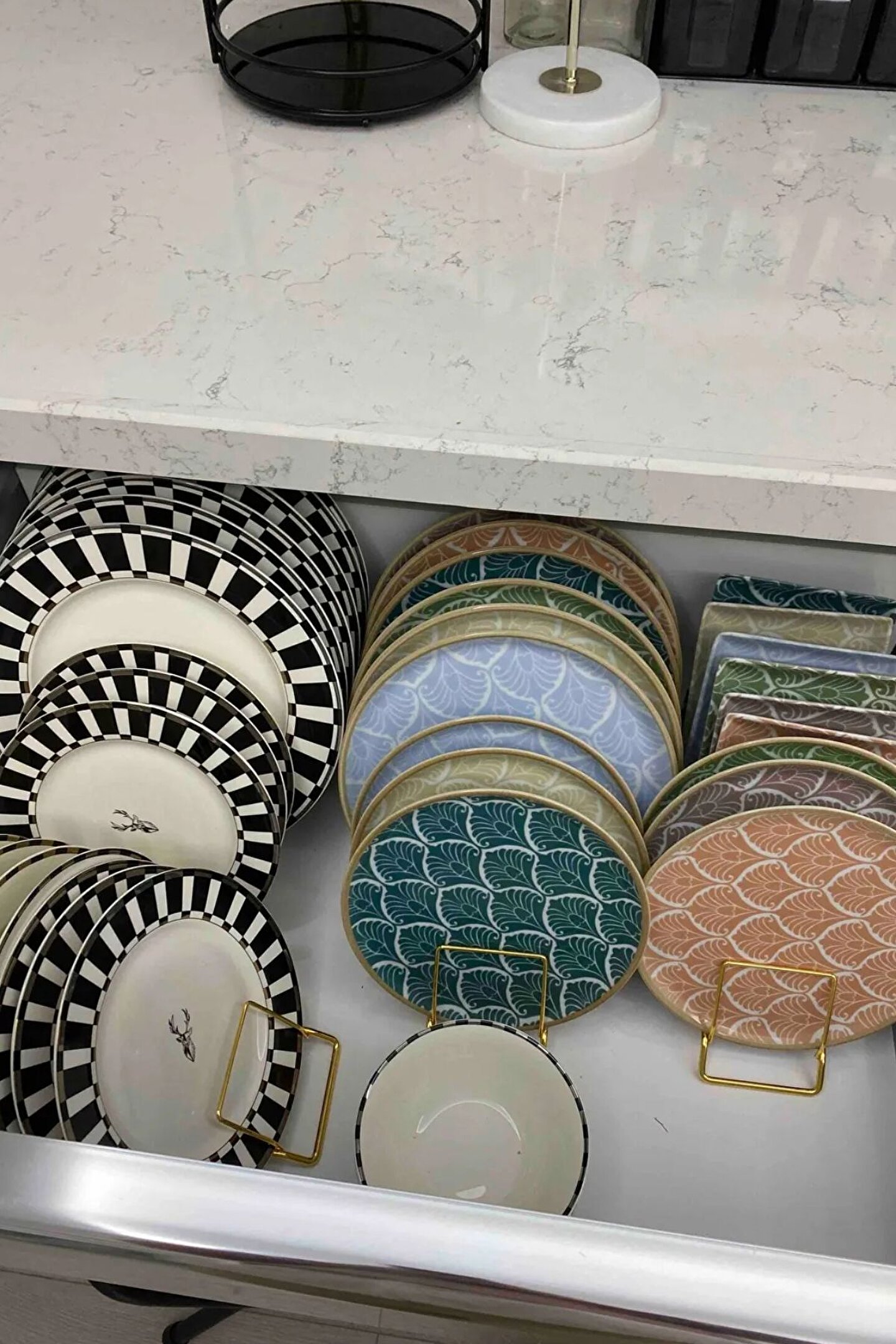 Krom malzemesi sayesinde dayanıklılık ve uzun ömürlü kullanım sunar; Belirtilmemiş boyutları ile çeşitli tabak ve bulaşıklarınıza uyum sağlar, dolap içi düzeninizi kolayca sağlar; 9 bölmeli tasarımı ile tabaklarınızı ve bulaşıklarınızı düzenli bir şekilde saklamanızı kolaylaştırır;