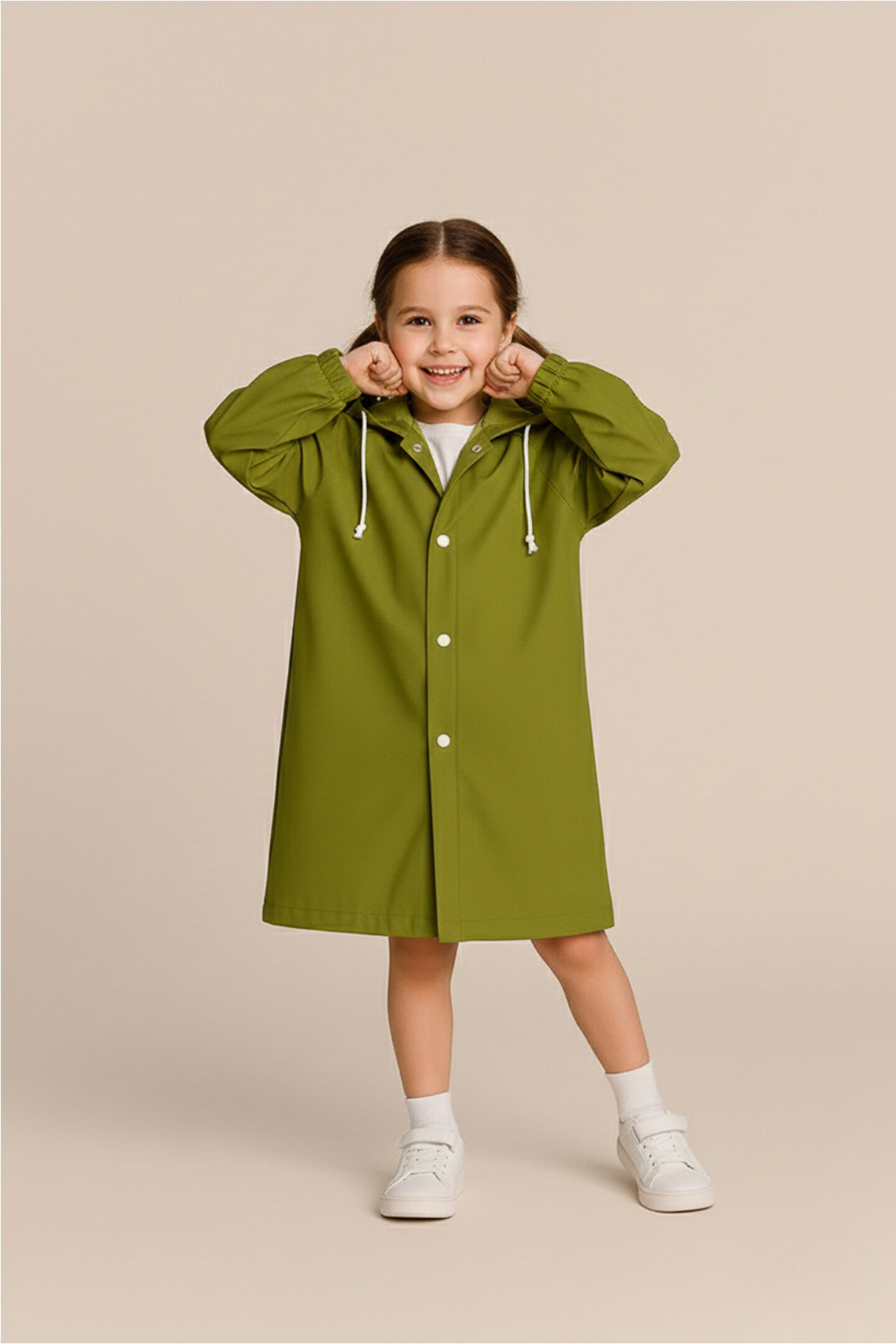 Çocuk Kapüşonlu Yağmurluk; Su geçirmez özel kumaş yapısı sayesinde yağmurlu ve rüzgarlı havalarda üstün koruma sağlar; Hafif ve nefes alabilen dokusu ile çocukların gün boyu rahat hareket etmesine yardımcı olur; Kapüşonlu tasarımı baş ve boyun bölgesini yağmura karşı korur; Önü çıtçıtlı kapanma sistemi pratik kullanım sunar; Uzun kesimi sayesinde ekstra koruma sağlar; Kol uçları lastikli yapıdadır ve rüzgar girişini önler; Günlük kullanım, okul, park, yürüyüş ve açık hava aktiviteleri için idealdir; Şık ve modern tasarımı ile hem spor hem günlük kombinlere uyum sağlar; Dört mevsim geçişlerinde rahatlıkla kullanılabilir; Dayanıklı yapısı sayesinde uzun ömürlüdür; Kolay temizlenir ve çabuk kurur; Kız çocukları için özel olarak tasarlanmıştır.