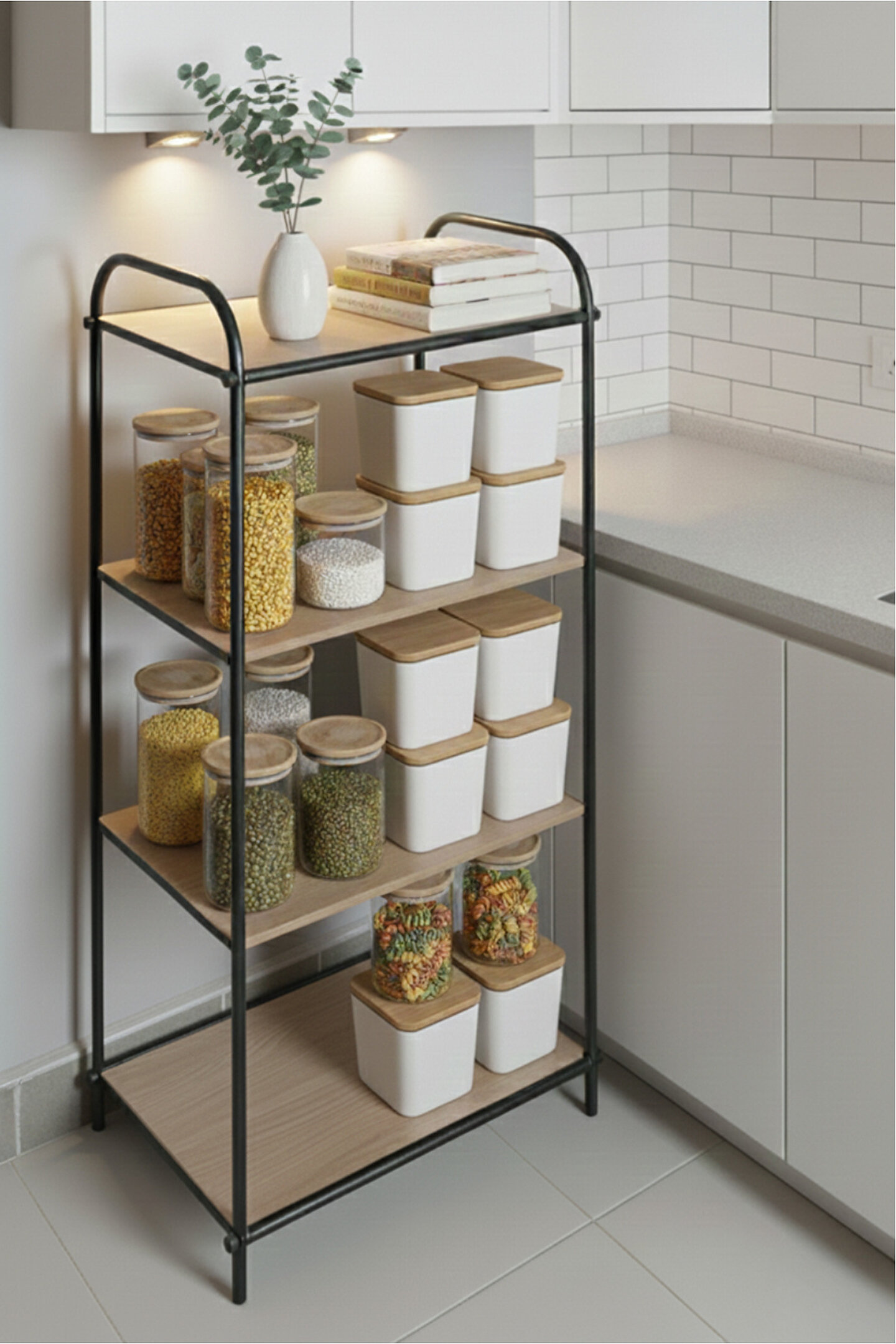 Orvila Çok Amaçlı 4 Katlı Raf Ofis Dosya Rafı Kitaplık Dekoratif 4 bölmeli Raf Mutfak Düzenleyici Rafı