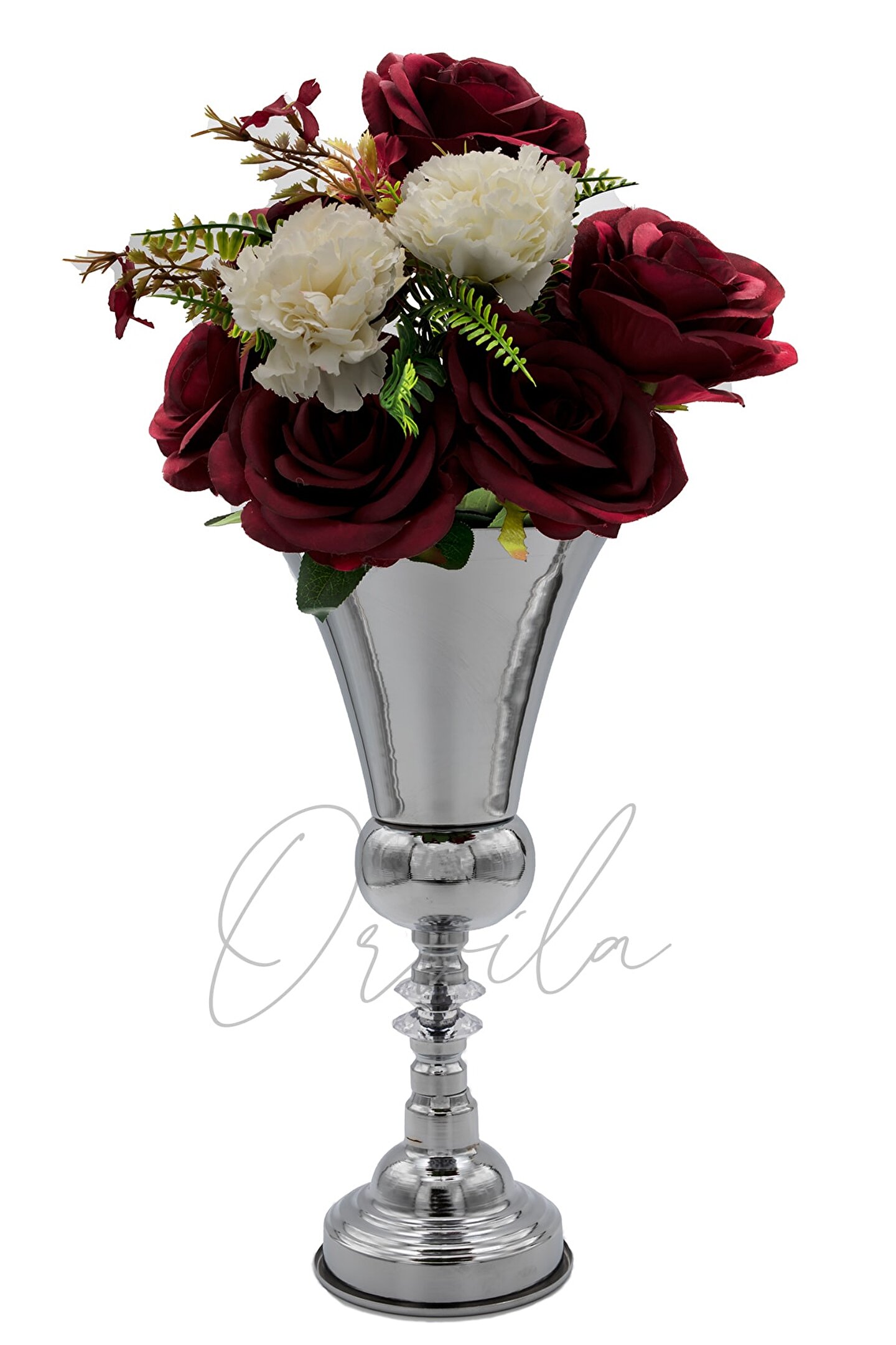 Yükseklik: 35 Cm; Çap: 15 Cm ; Materyal: Metal; Çiçekler dekor amaçlı kullanılmıştır. Pakete dahil değildir.; Söz , nişan , düğün , özel gün ve gece organizasyonlarınızda yemek ve sunum masalarında dekoratif amaçlı tercih edebilirsiniz.; Nişan ve konsept fotoğraf çekimlerinde organizasyon masasında ve arka fonda görsel olarak kullanılabilir.; Evinizde salon , oturma odası , antre gibi alanlarda sehpa, masa ve konsol dekorasyonlarında kullanarak evinize havalı bir görünüm kazandırabilirsiniz.;