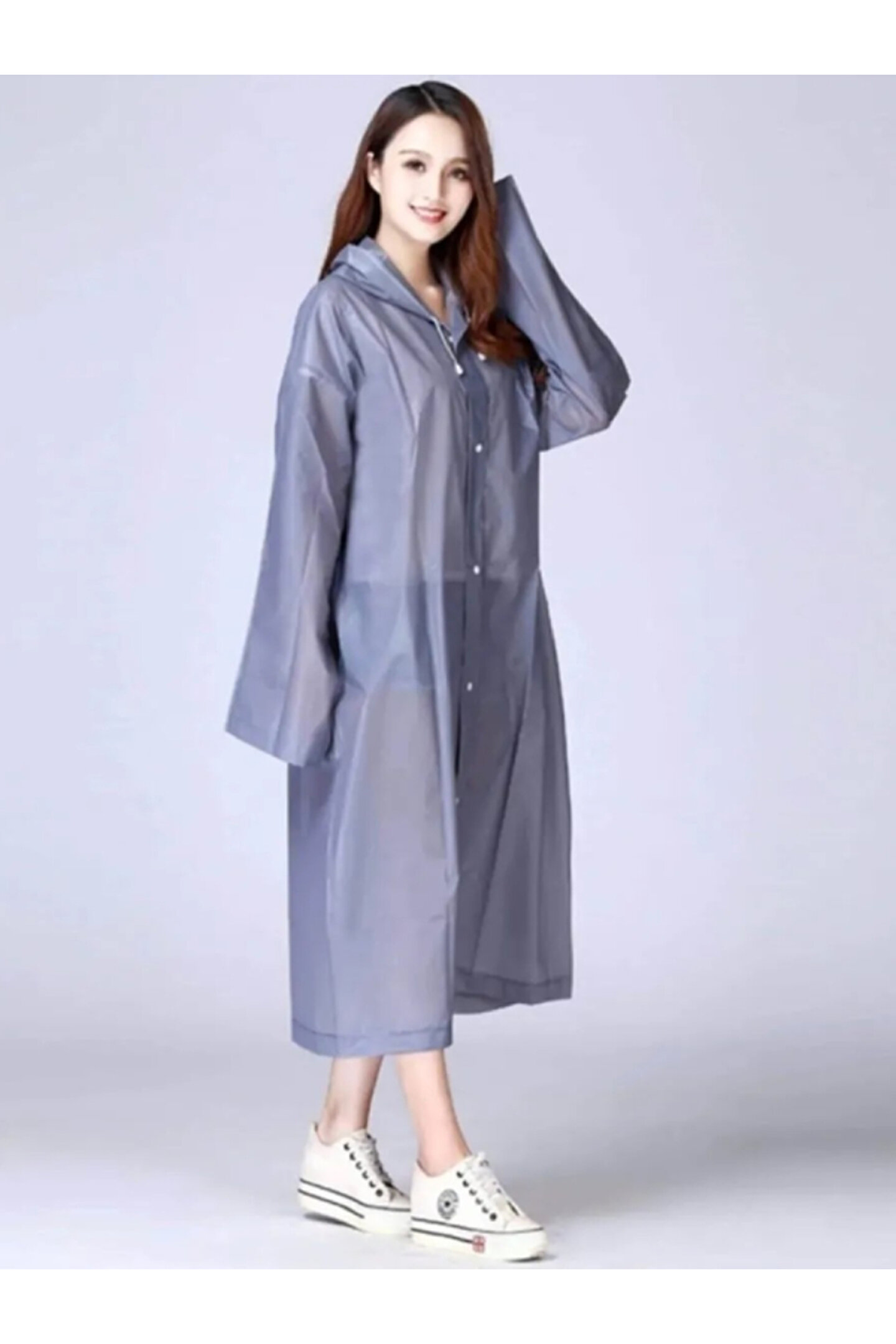 Orvila Eva Su Geçirmez Kaliteli Uzun Yağmurluk Unisex - Kadın Erkek Kapüşonlu Çıtçıtlı Standart Beden