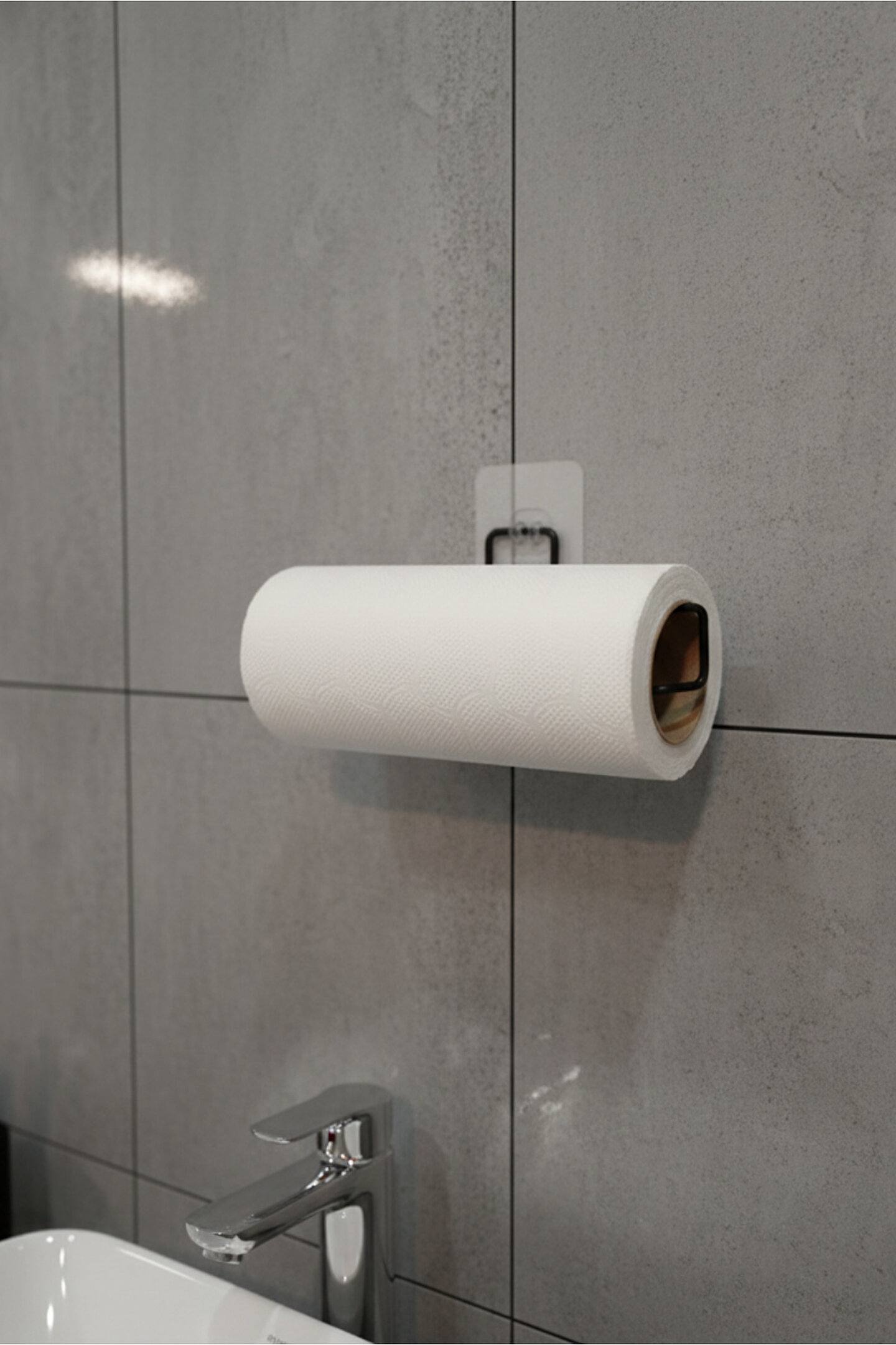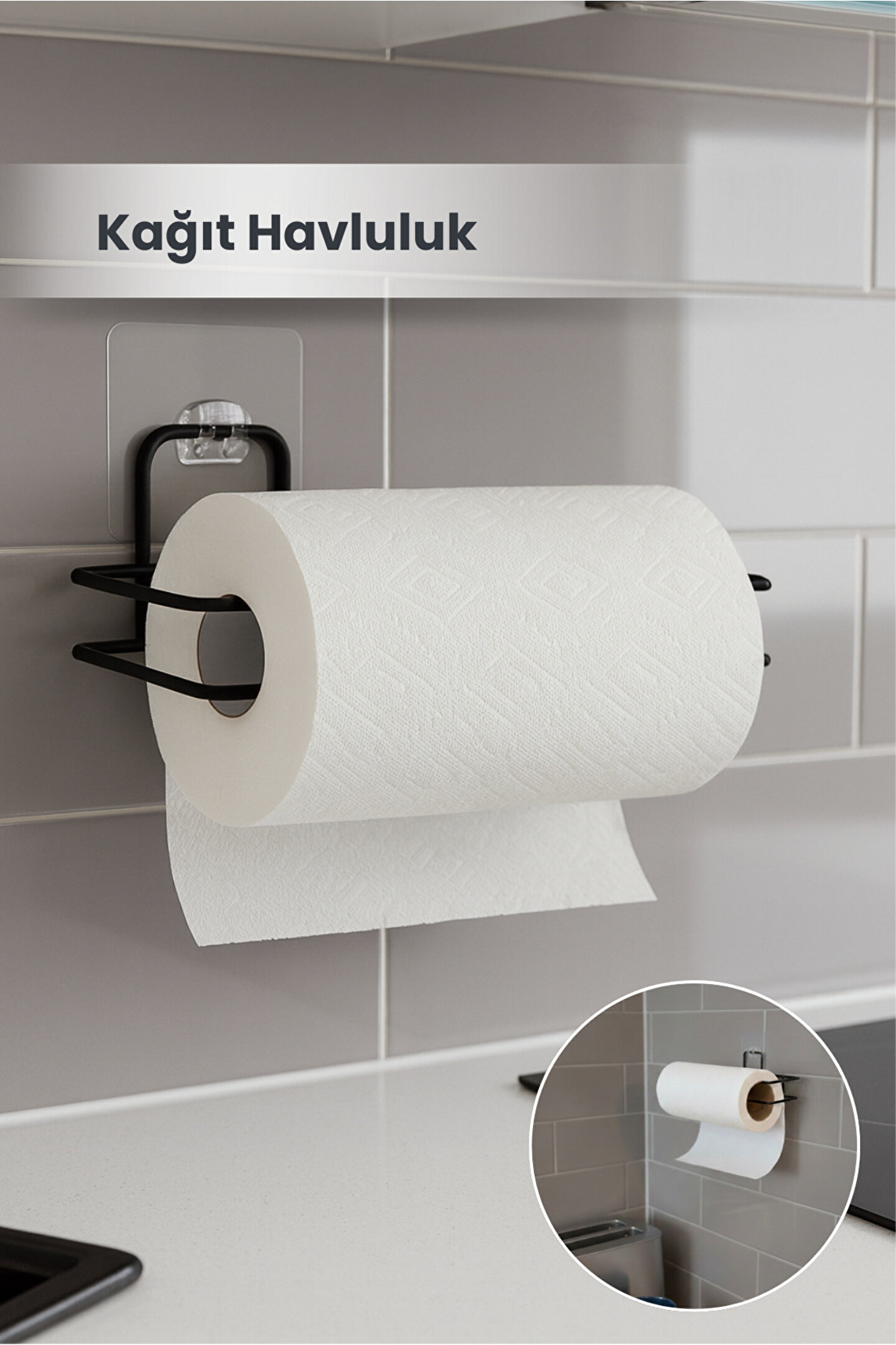 Kağıt Havluluk; modern mutfak ve banyolar için şık ve minimal tasarım; güçlü yapışkanlı montaj sayesinde delme ve vida gerektirmeden kolay kurulum; mat siyah metal gövde ile paslanmaya ve neme dayanıklı yapı; standart rulo kağıt havlularla uyumlu geniş hazne; kağıdı düzgün ve kontrollü şekilde koparmayı sağlayan ergonomik tasarım; tezgah üstünde yer kaplamayan duvar tipi kullanım; mutfak, banyo, WC, ofis ve kafe gibi alanlarda çok amaçlı kullanım; sağlam taşıma kapasitesi ile uzun ömürlü kullanım; modern fayans ve düz duvar yüzeyleriyle uyumlu şeffaf askı aparatı; hijyenik ve pratik kullanım sağlayan açık rulo sistemi; kolay temizlenebilir yüzey; estetik ve fonksiyonelliği bir arada sunan dekoratif kağıt havluluk; düzenli ve ferah bir alan oluşturmak isteyenler için ideal çözüm.;