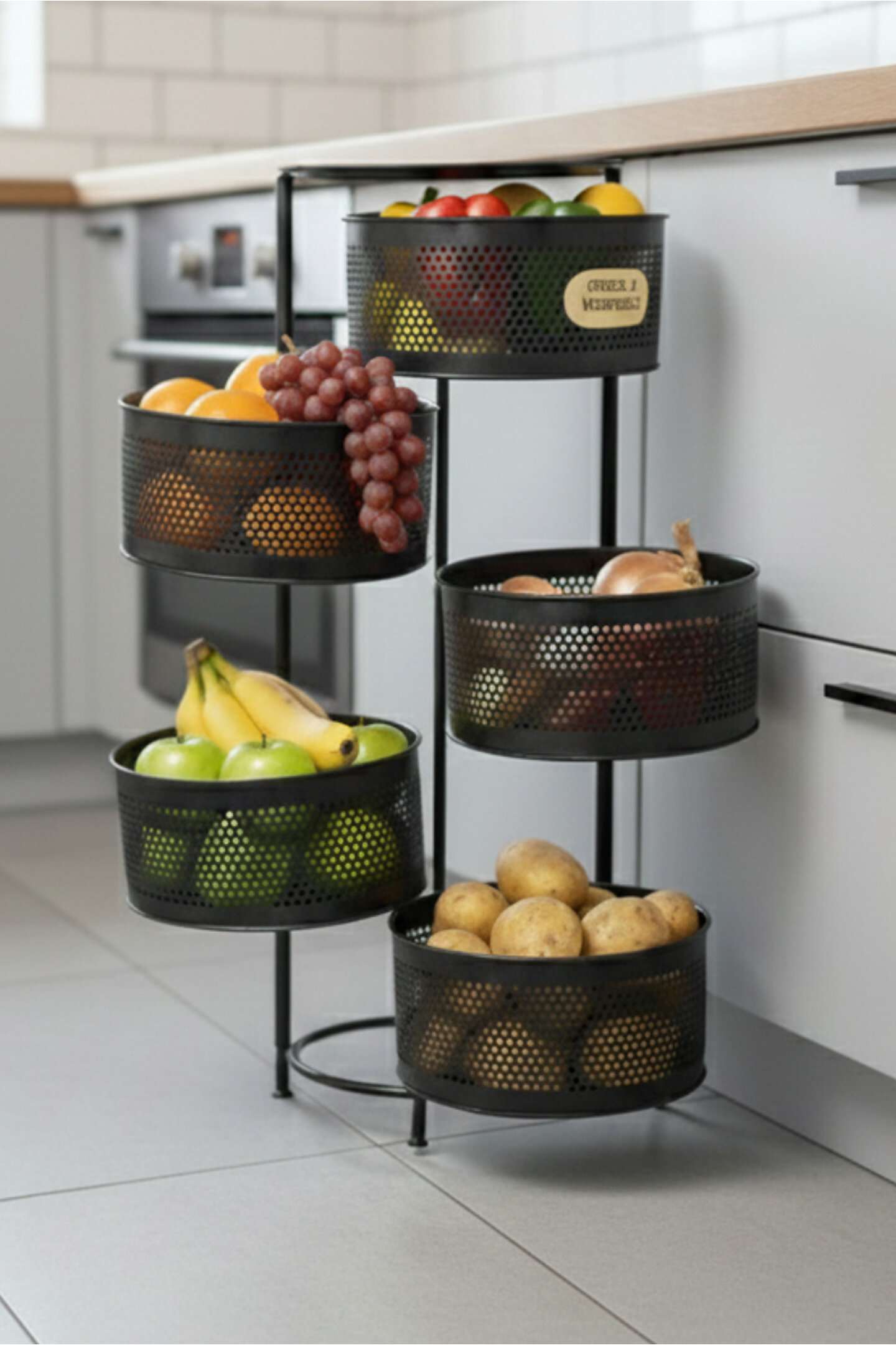 Ölçüler: Sepetler : 30x30 Cm; Sepet Yüksekliği : 13 cm ; Toplam Yükseklik : Yükseklik : 87 cm; Mutfak tezgâhında ya da evinizin başka alanlarında ekstra depolama alanına ihtiyaç duyanlar.; Sebze ve meyvelerini düzenli şekilde saklamak isteyenler.; Evleri küçük olan, alanı verimli kullanmak isteyenler.; Kolayca hareket ettirip gerektiğinde sabitlemek isteyen kullanıcılar.;