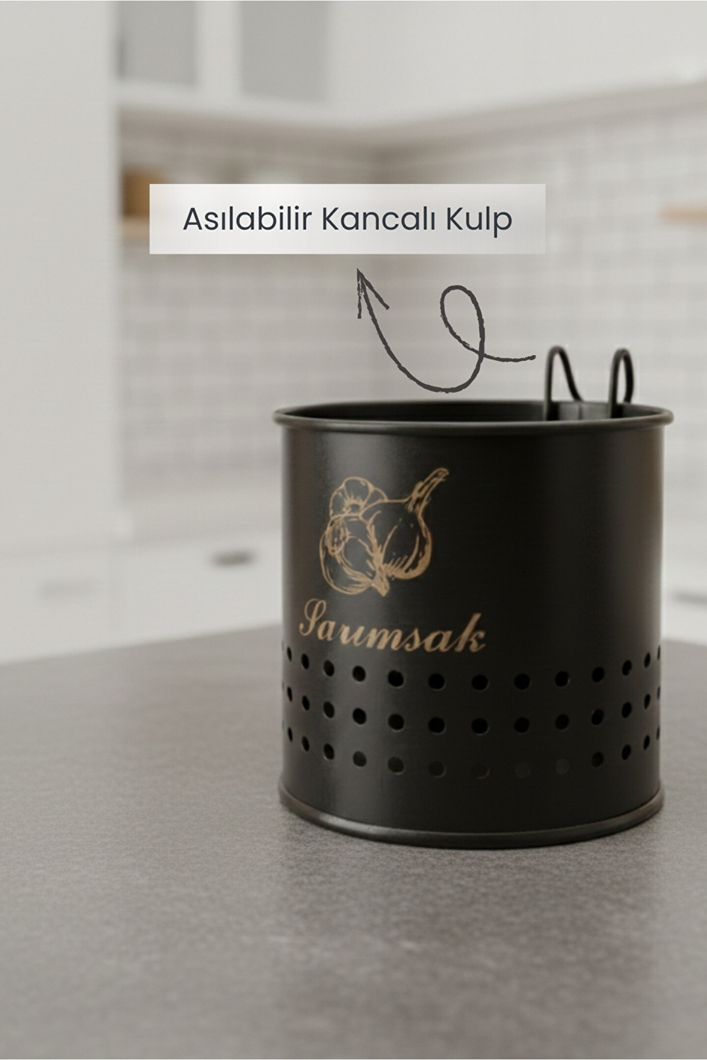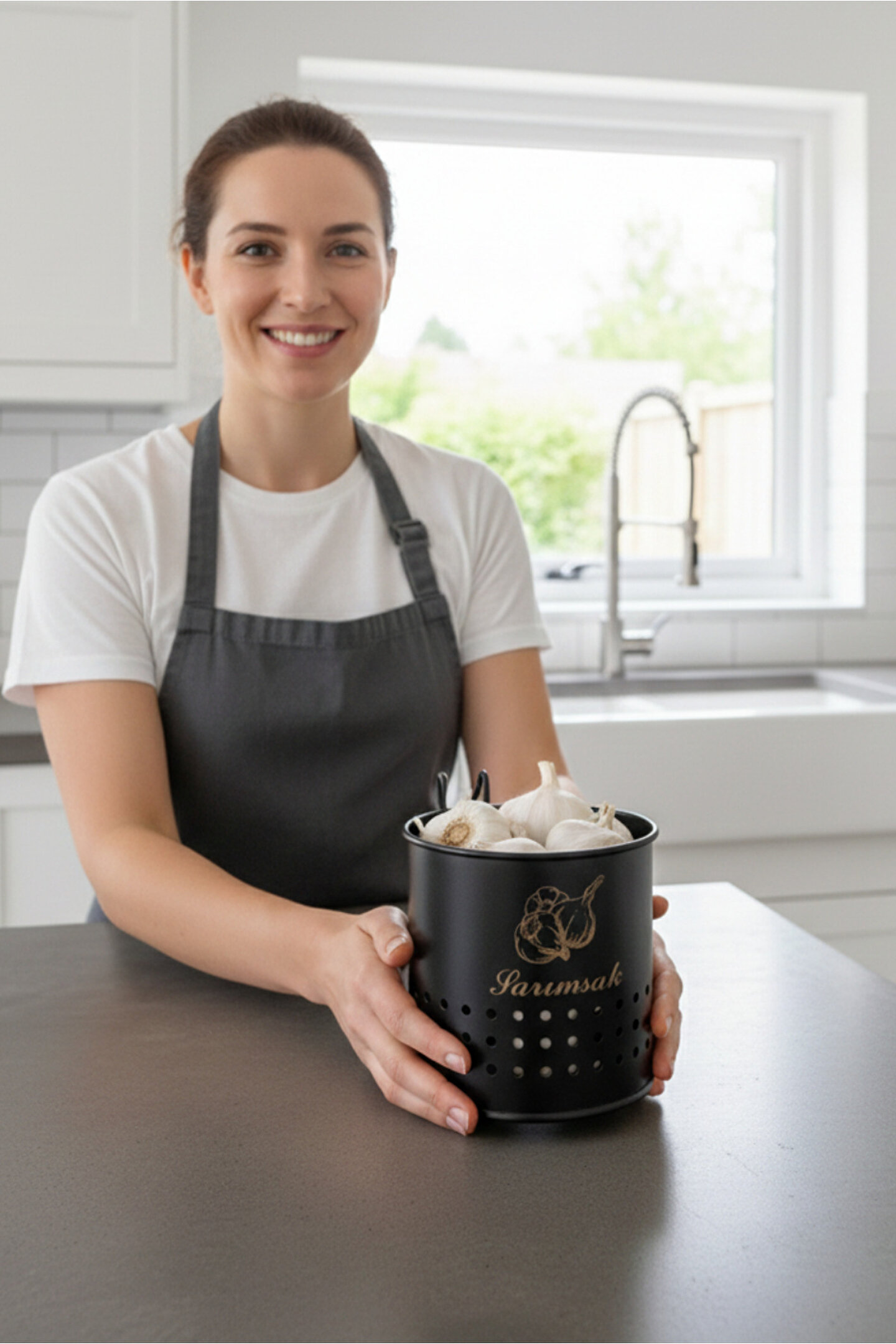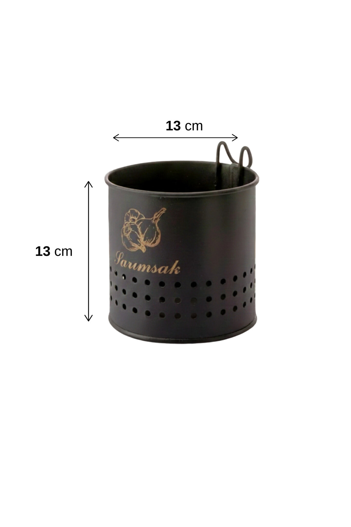 Metal sarımsaklık; kaliteli ve dayanıklı çelik gövde; paslanmaz yapısı sayesinde uzun ömürlü kullanım; sarımsakları nemden, ışıktan ve küflenmeden korur; alt kısımdaki hava delikleri sayesinde ideal hava akışı sağlar; sarımsakların daha uzun süre taze kalmasına yardımcı olur; modern mat siyah tasarım; mutfak tezgâhında dekoratif duruş; hijyenik kapaklı yapı; sarımsak kokusunu dışarı yaymadan muhafaza eder; geniş iç hacmiyle bol miktarda sarımsak depolar; kolayca silinip temizlenebilir; mutfak düzenini artıran pratik saklama çözümü; sağlıklı saklama koşulları oluşturur; robust metal yapısı darbelere karşı dayanıklıdır; ergonomik tutma bölümü sayesinde rahat kullanım; mutfak organizasyon ürünleri arasında popüler tercihlerden biridir; modern, şık ve fonksiyonel tasarımıyla her mutfağa uyum sağlar; uzun süreli tazelik ve düzen için ideal bir saklama kabı.; Ölçü 13x13 cm dir.