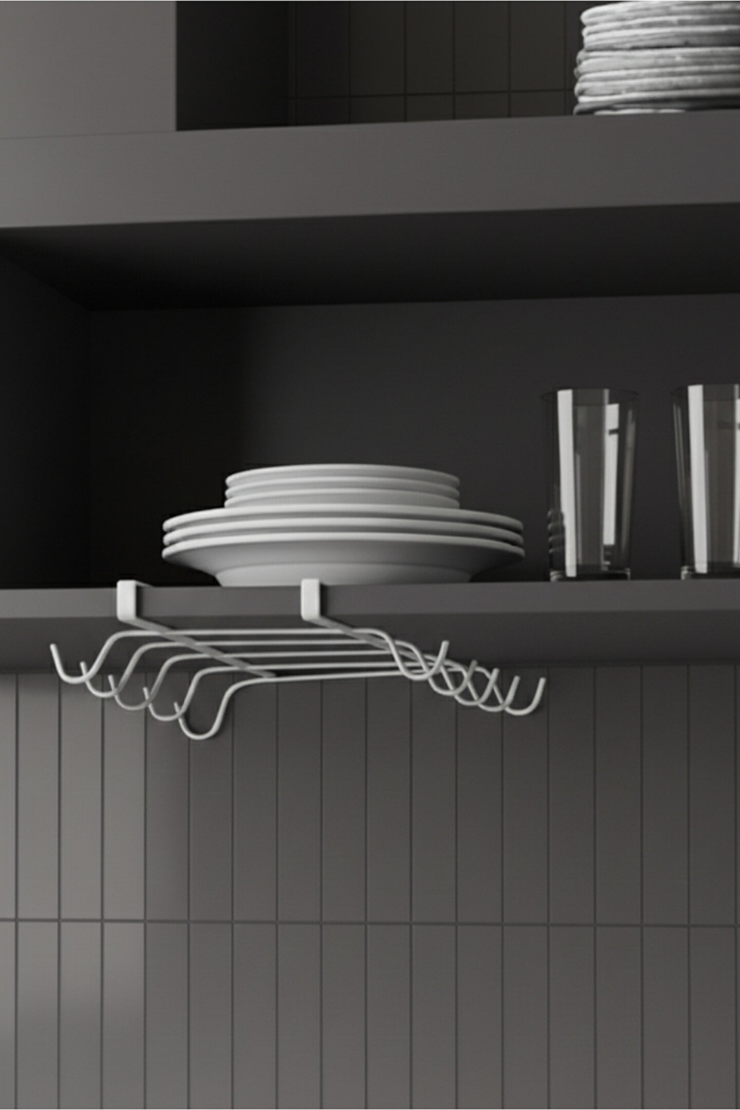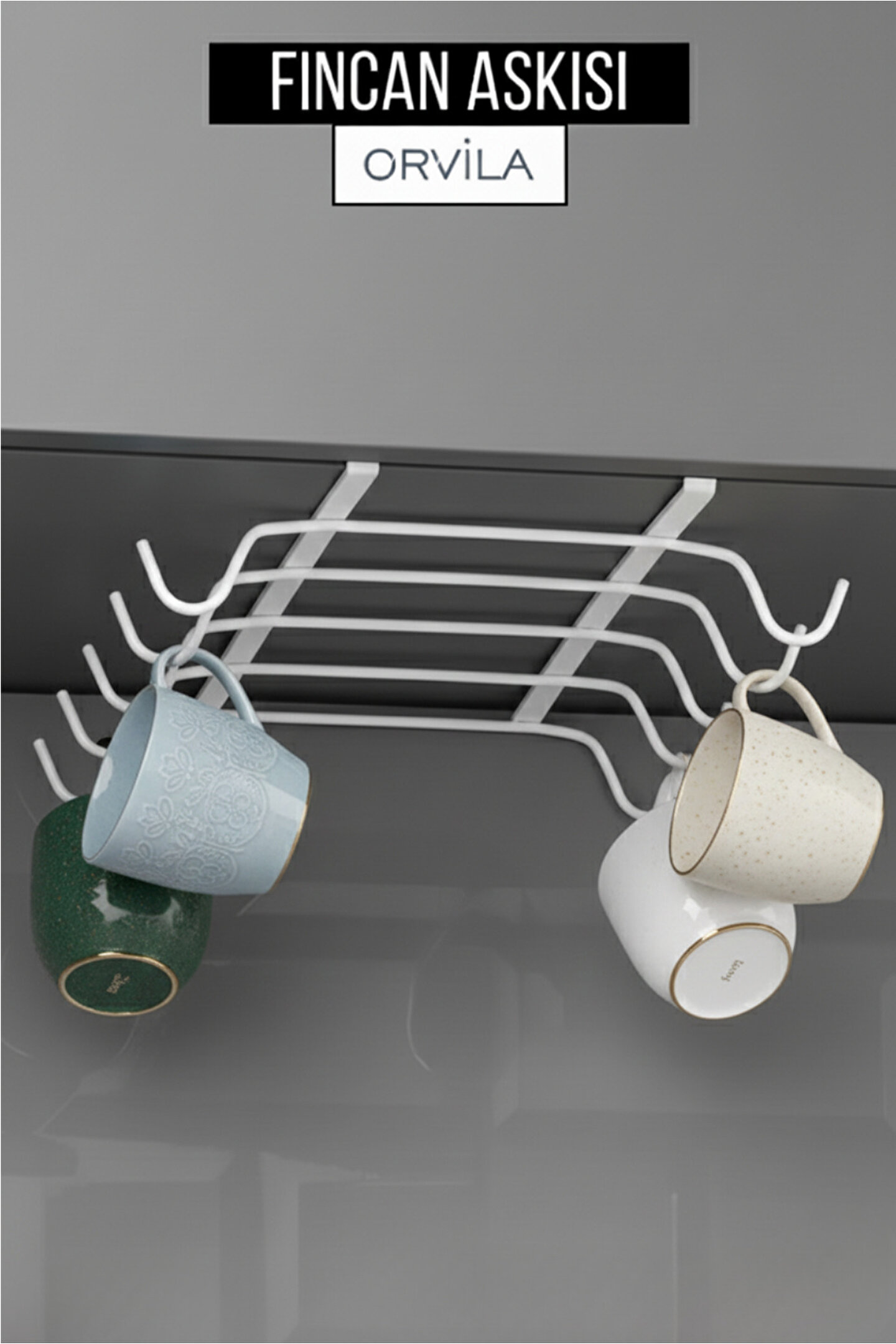 Orvila Raf Altı Asılabilir 10 Kancalı Fincan Ve Kupa Bardak Düzenleyici Askılığı - Beyaz