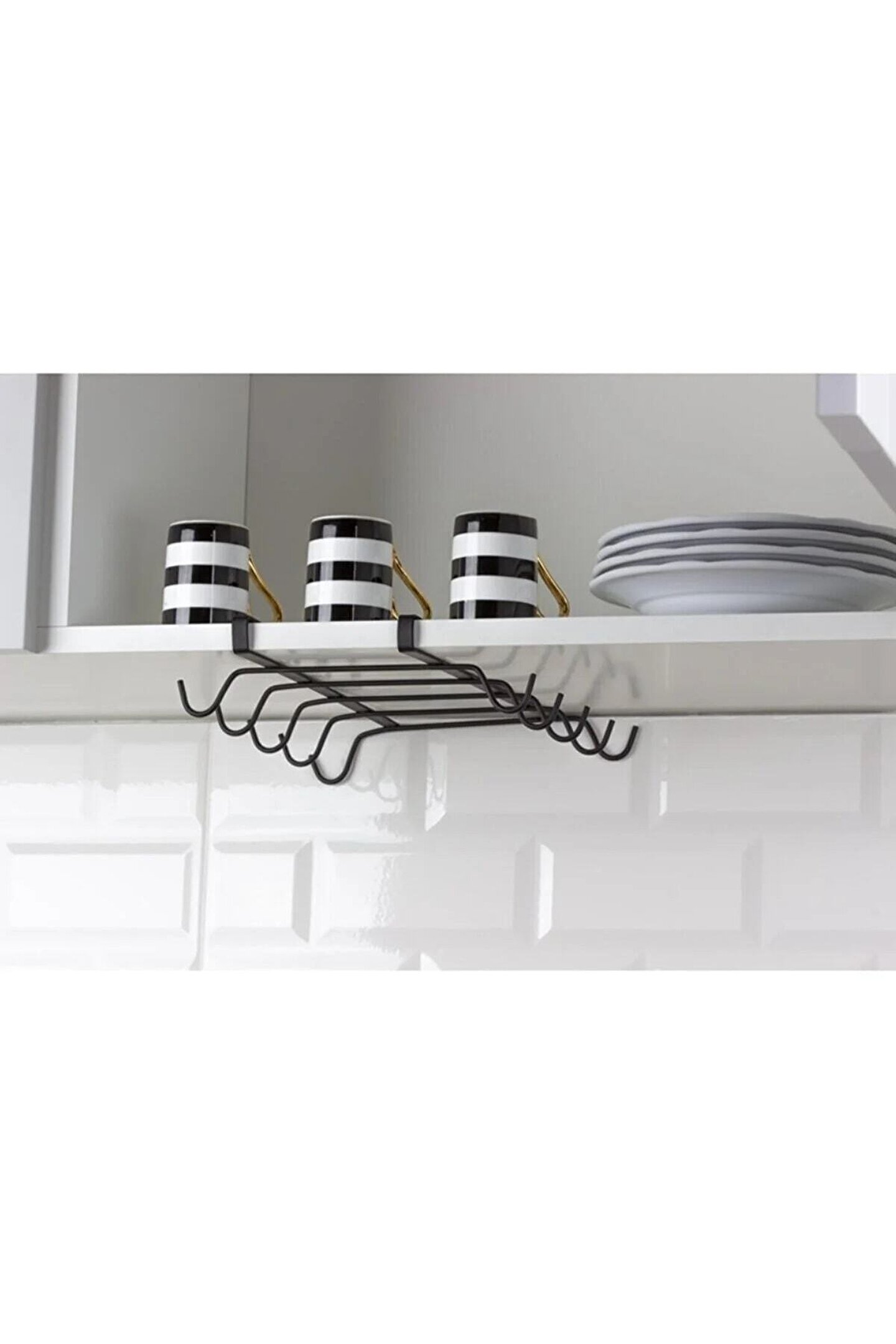 Orvila Raf Altı Asılabilir 10 Kancalı Fincan Ve Kupa Bardak Düzenleyici Askılığı - Siyah