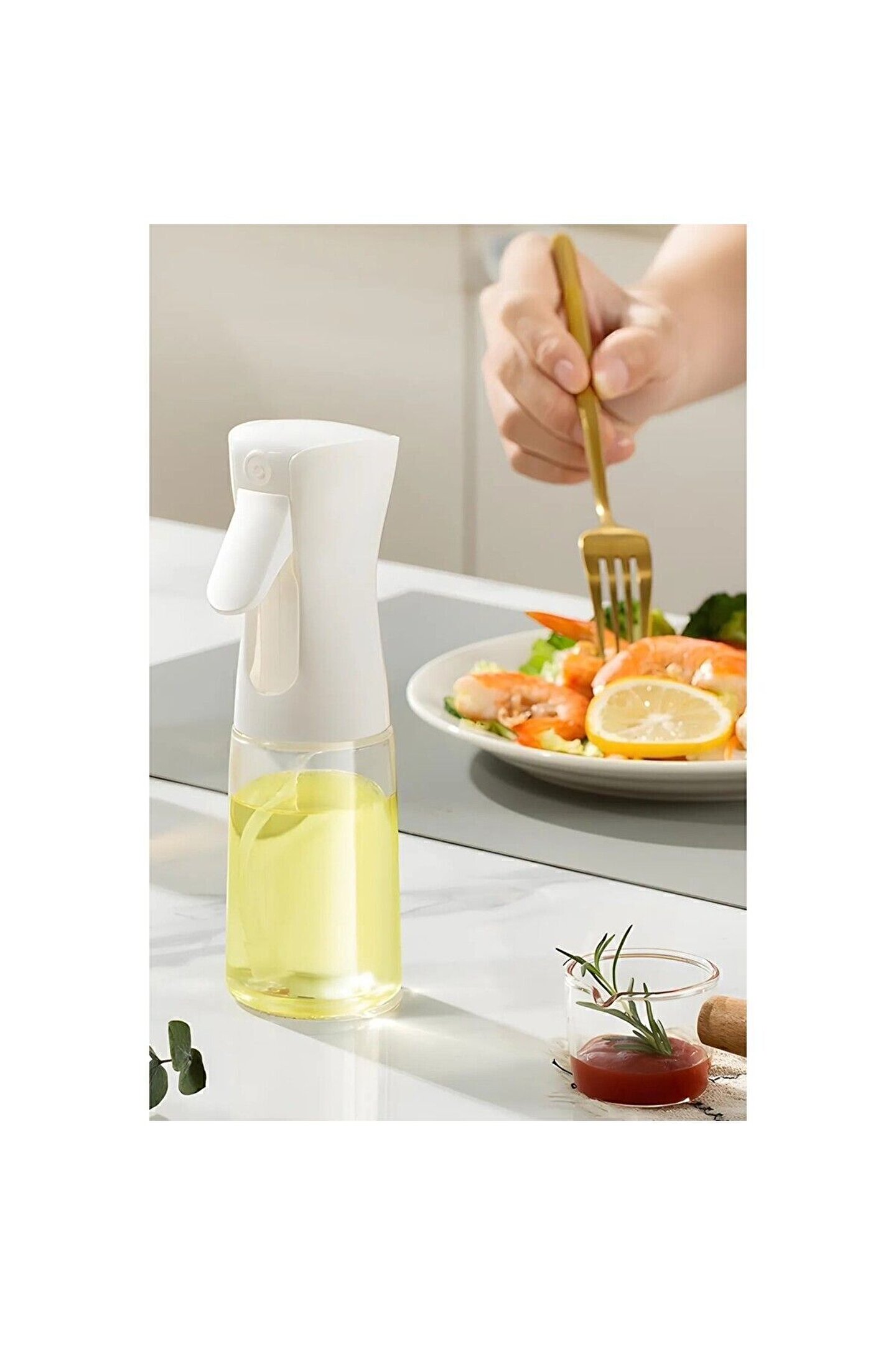 Airfryer kullanımına özel olarak tasarlanmış püskürtmeli sprey şişesi, yağınızı kolayca dağıtarak mükemmel pişirme deneyimi sunar.; Cam materyal yapısıyla şeffaf ve temiz kullanım imkanı sağlar; böylece ne kadar yağ kullandığınızı görebilirsiniz.; Tek parça halinde gelen bu yağdanlık, basit ve kullanışlıdır; mutfakta yer tasarrufu sağlar ve düzenli bir görünüm sunar.; Sprey mekanizması sayesinde yağları eşit şekilde dağıtarak yemeğinizin her yerine yağın eşit şekilde yayılmasını sağlar, böylece lezzetli ve sağlıklı pişirme sonuçları elde edersiniz.;