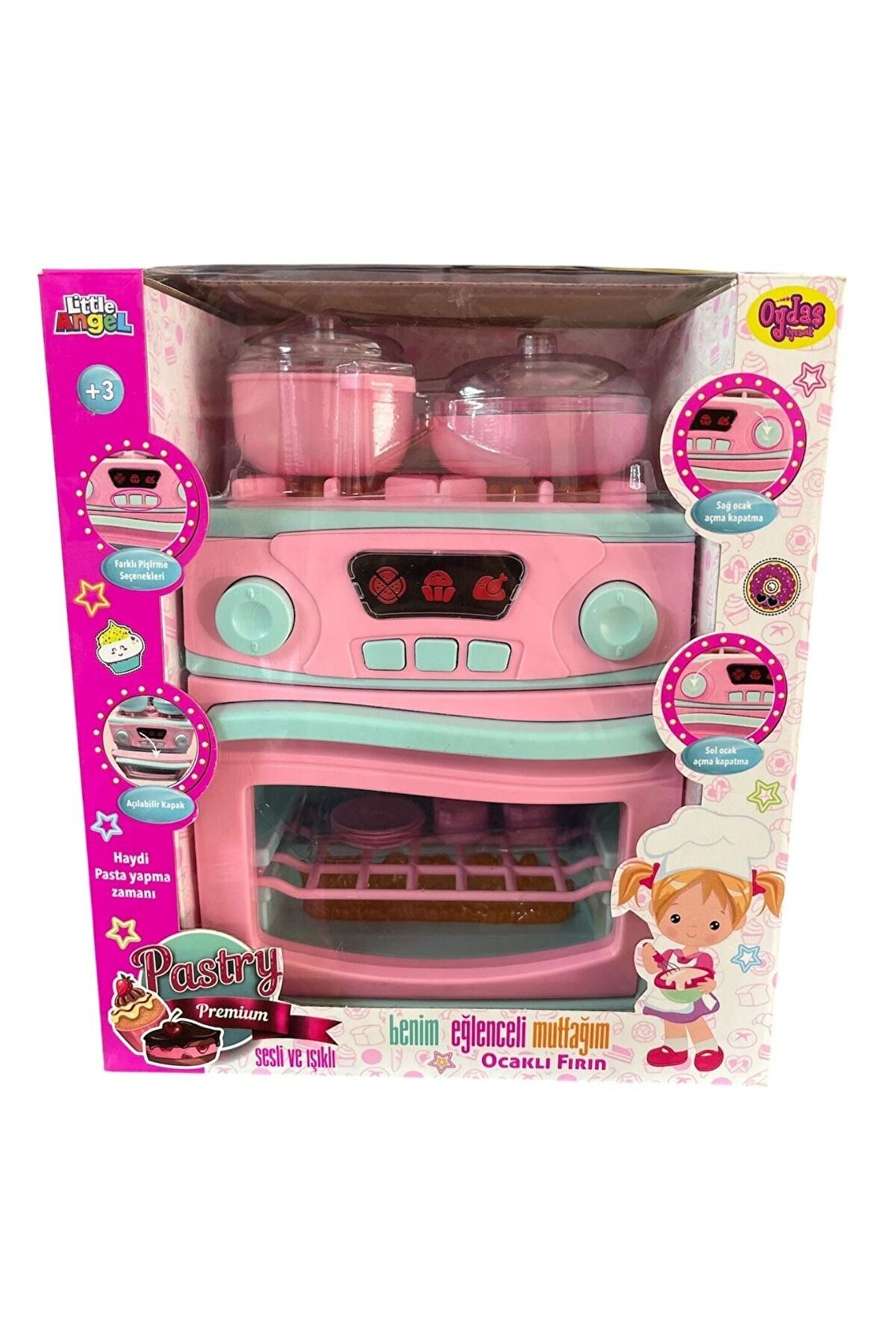 Oydaş Oyuncak Sesli Işıklı Pilli Ocaklı Fırın Seti 2609-Pembe