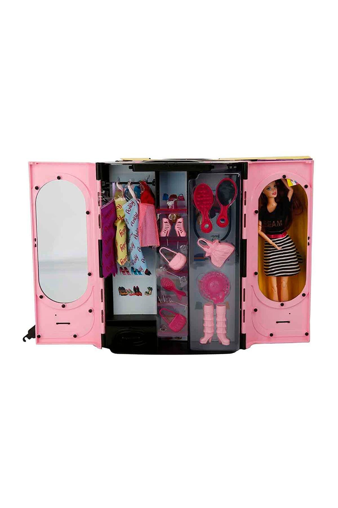 Stilim Sensin Bebek ve Gardırobu ile şıklık yarışı başlasın! Kutu içerisinden çıkan bebeği en güzel kıyafetlerinle süsle ve eğlenceye başla! Gardırobun içerisindeki rengarenk kıyafetler ve birbirinden güzel aksesuarlar senin zevkinle buluşmayı bekliyor.; Dilediğin renkte elbiseyi bebeğine giydirebilir, çantasını seçebilir ve aksesuarını takarak görünümünü tamamlayabilirsin.; Ne kadar da şık görünüyor! Set içerisindeki elbise ve aksesuar desenleri değişiklik gösterebilir.; Çocukların yeni hikayeler oluşturarak hayal güçlerinin ve yaratıcılıklarının gelişmesini desteklerken onların keyifli vakit geçirmesine yardımcı olur.; Arkadaşları ile oynayacakları oyunlar sosyalleşmelerine katkı sağlar.; Koleksiyon merakını destekler.; Ürünün; Koyu Pembe ve Açık Pembe olmak üzere 2 farklı modeli bulunmaktadır.; Set içerisinde; 4 adet elbise, 3 adet çanta, 2 adet ayakkabı, 2 adet tarak, şapka ve çeşitli aksesuarlar yer almaktadır.; Kutu ölçüsü: 36,5 x 6,7 x 34,5 cm Ağırlık: 1,055 kg