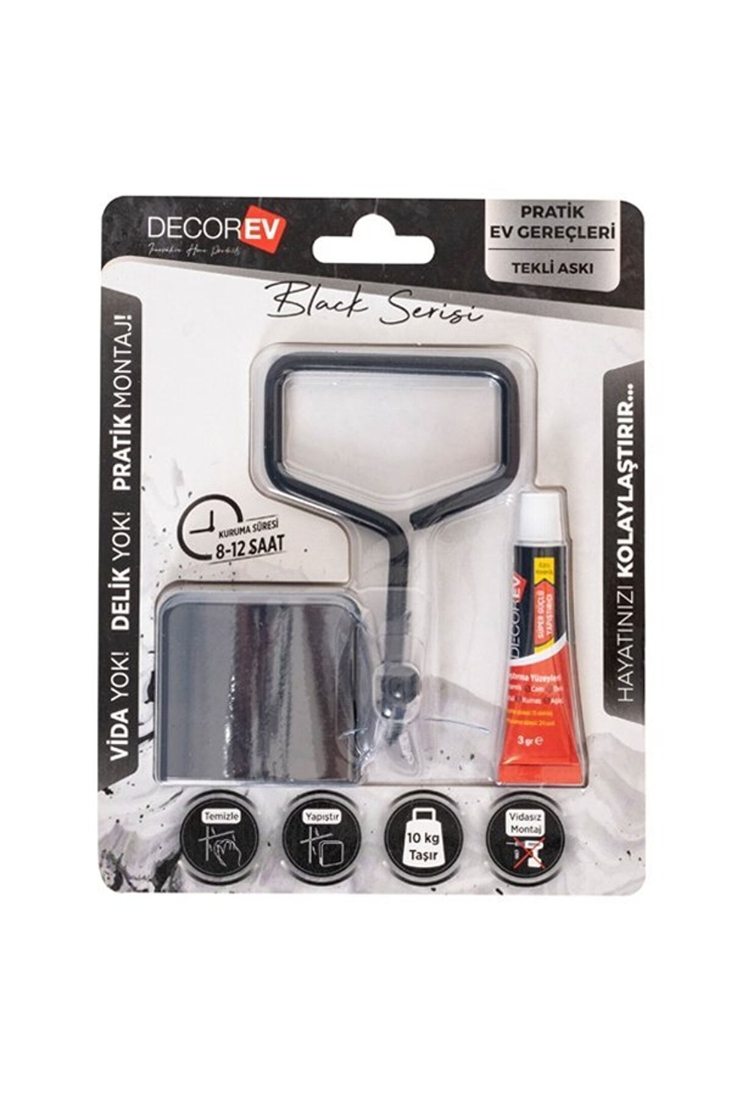 Öz Decorev Süper Yapışkanlı Metal Yapıştırıcılı Siyah Tekli Askı Dc-5052
