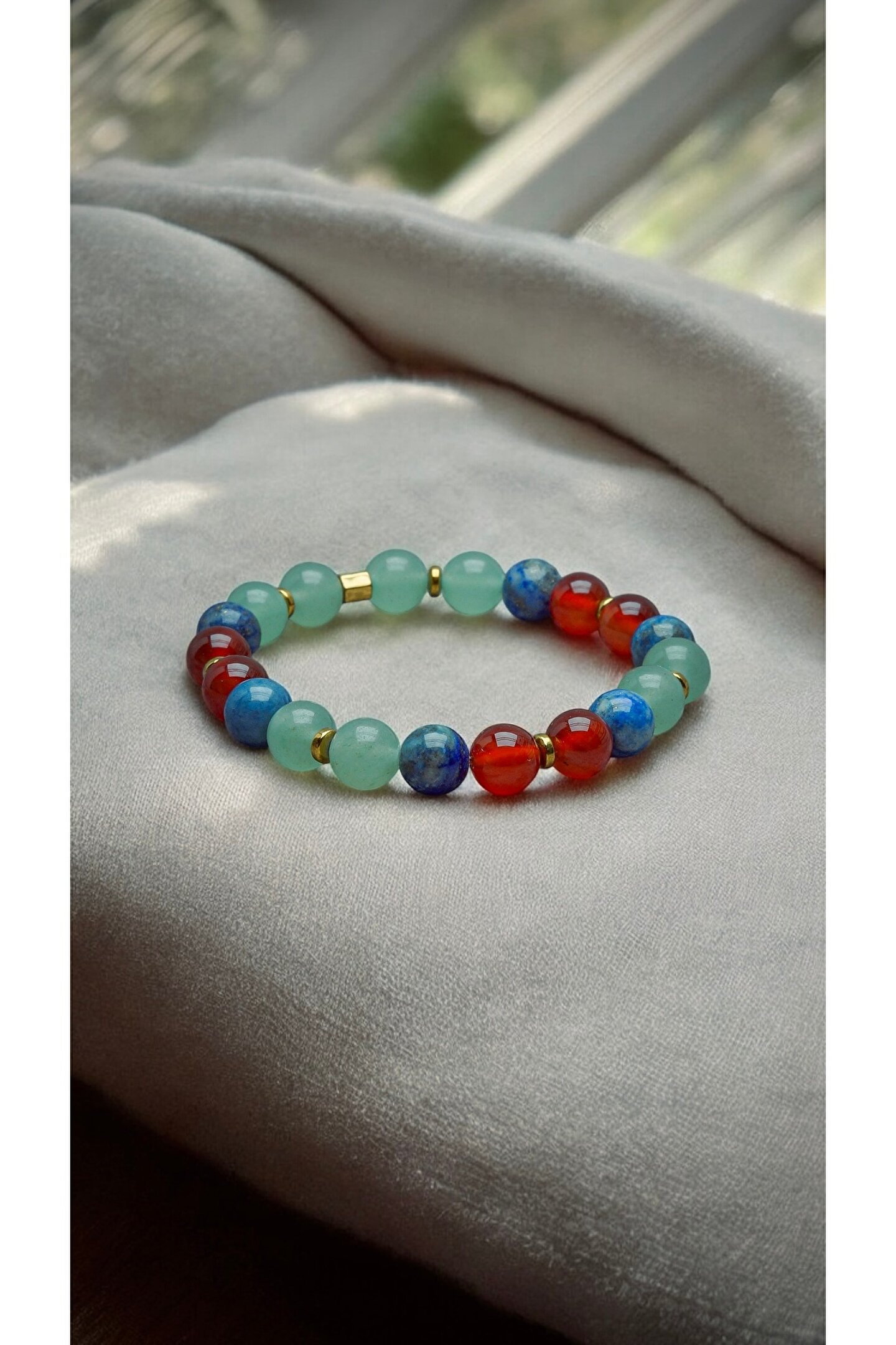 Koç burcu, cesur, enerjik ve liderlik özellikleriyle tanınır; bu yüzden onun dinamik yapısını dengeleyen, kararlılığını ve motivasyonunu artıran taşlar tercih edilir.; Aventurin, Koç un cesaretini güçlendirirken şans ve fırsatları çeker, aynı zamanda kalp çakrasını dengeleyerek içsel huzur sağlar.; Karnelyan, yaratıcılığı ve yaşam enerjisini artırır; Koç un motivasyonunu yükselterek onu daha kararlı ve odaklanmış hale getirir.; Lapis Lazuli, Koç un entelektüel yönünü pekiştirir ve iletişimde özgüven kazandırır, kararlarında daha net olmasına yardımcı olur.; Bu taşlar, Koç burcunun liderlik yeteneklerini desteklerken, aynı zamanda onu ruhsal ve fiziksel açıdan güçlendirir.; Bilek ölçüsü : Bilek çevrenizi ölçmek için bir mezureyi bileğinizin en geniş yerine, çok sıkmadan ancak tam oturacak şekilde dolayın.; Mezurenin başlangıç noktası ile birleştiği yeri okuyarak ölçünüzü belirleyin.; Eğer mezureniz yoksa, bir ip veya şerit kullanarak bileğinizi ölçüp, ardından bir cetvelle uzunluğunu belirleyebilirsiniz.; Doğal taşlar, yüzyıllardır farklı kültürlerde enerjileri ve faydalı etkileriyle tanınmış ve kullanılmıştır.; Ancak bu etkiler kişisel inanç, deneyim ve algıya bağlı olarak değişiklik gösterebilir.; Bu taşların doğal güzellikleri ve eşsiz enerjileri, günlük yaşamınıza estetik ve anlam katabilir.