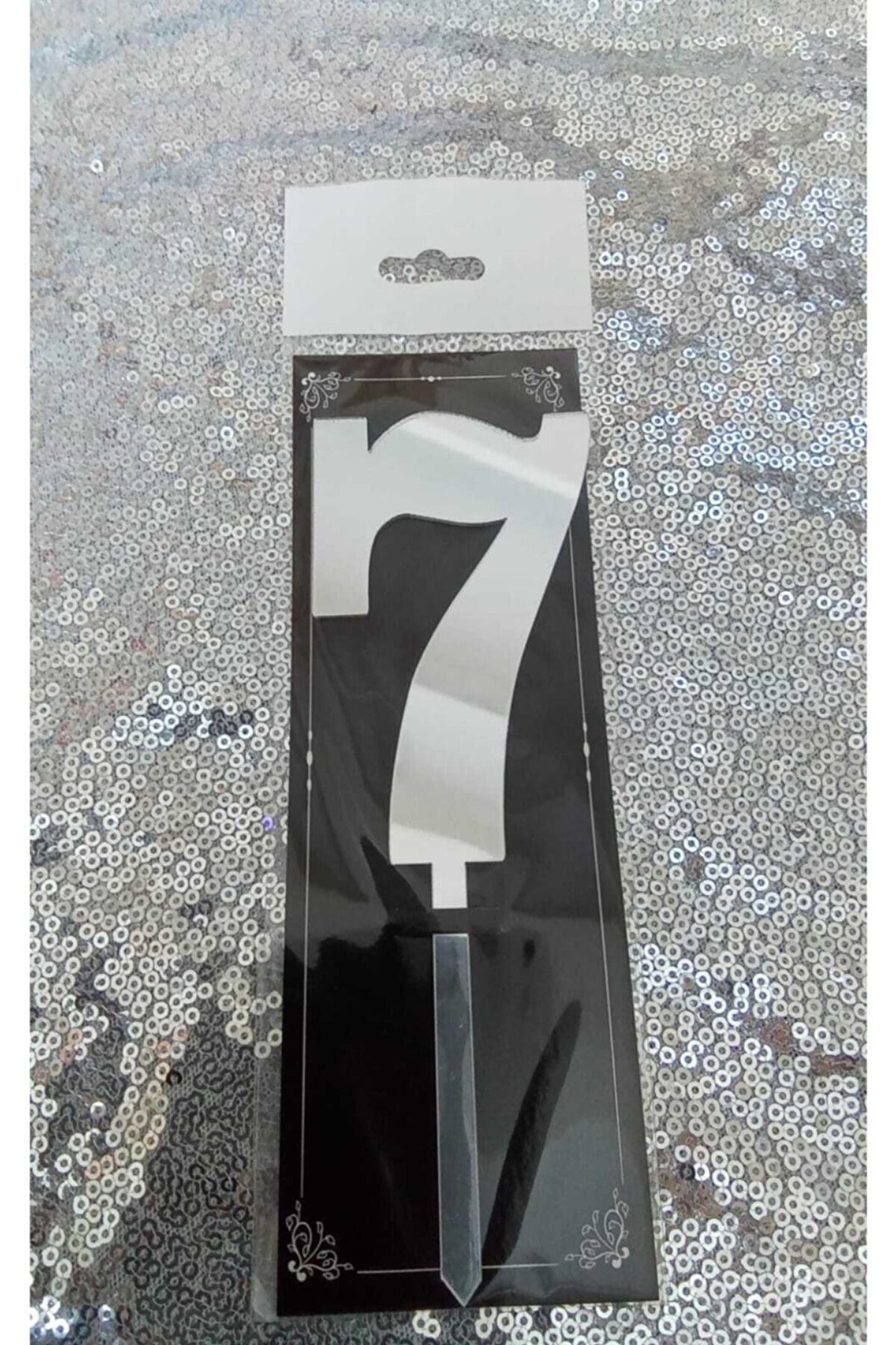 oziparti 7 Rakam Gümüş Pleksi Pasta Süsü 8 Cm