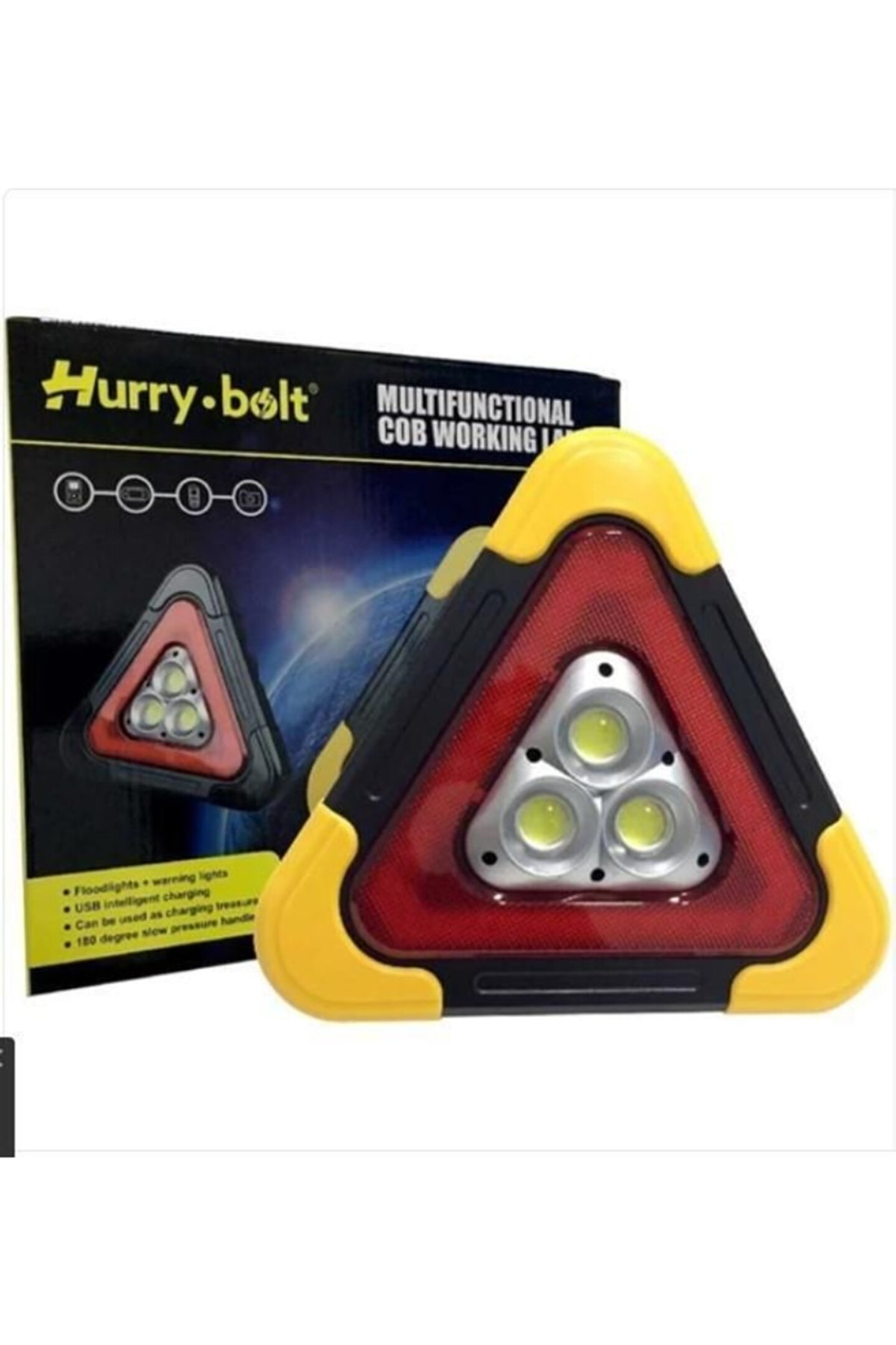 Trafik uyarı lambası ; ürün 4 adet kalem pil ya da 2 adet 18650 li-ion pil ile kullanılabilir ; Piller Dahil Değildir ; Şarjlı pil kullanılarak şarj edilebilir ; Şarj edildikten sonra powerbank olarak kullanılabilir ; Güneş paneli yoktur ; Kısık ışık, yüksek ışık, kırmızı üçgen, kırmızı üçgen flaşör 4 farklı mod yanma özelliği;