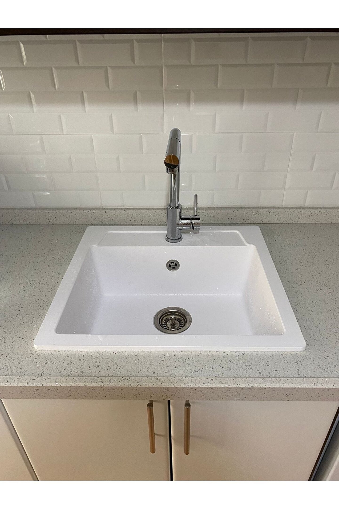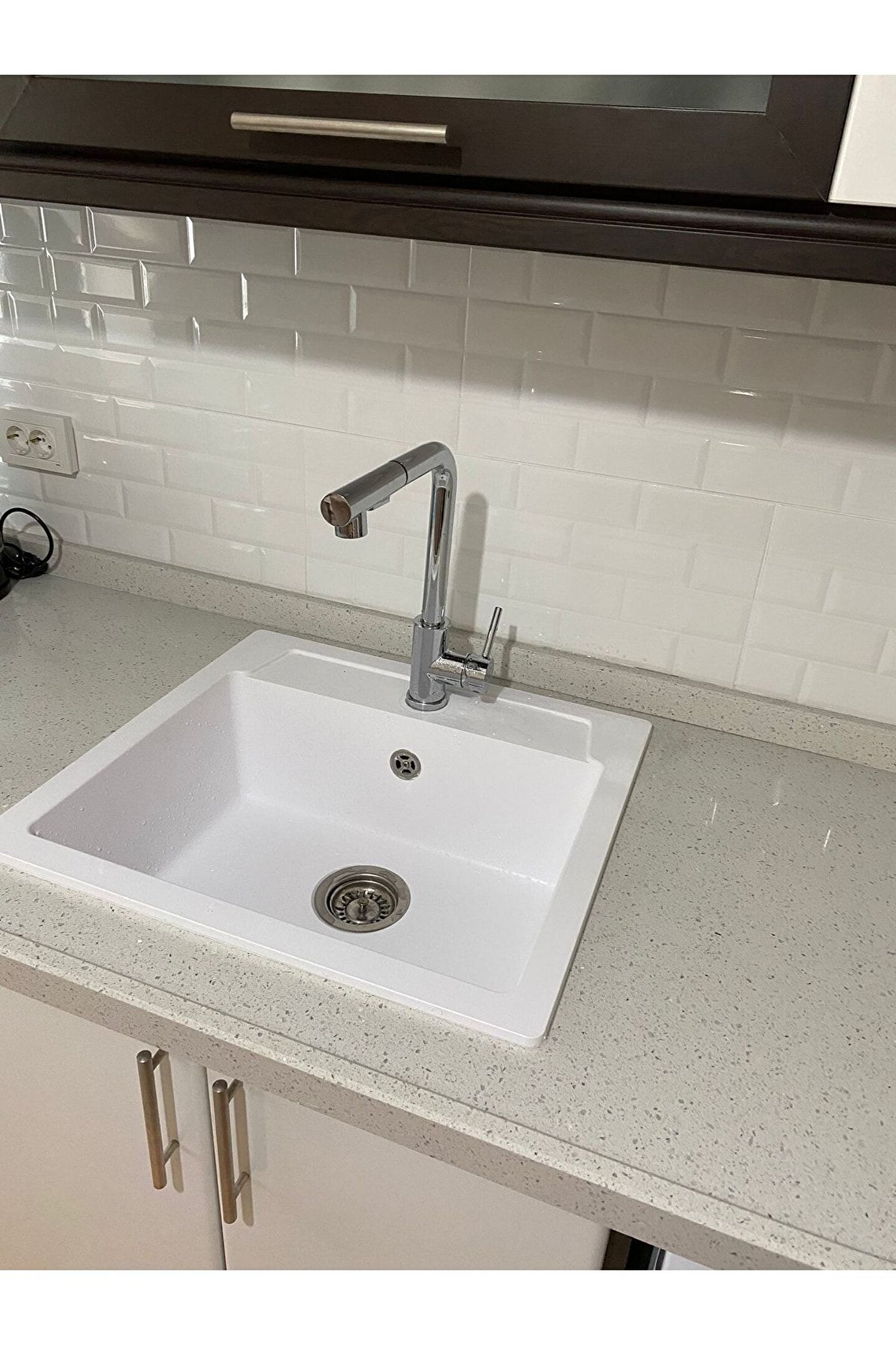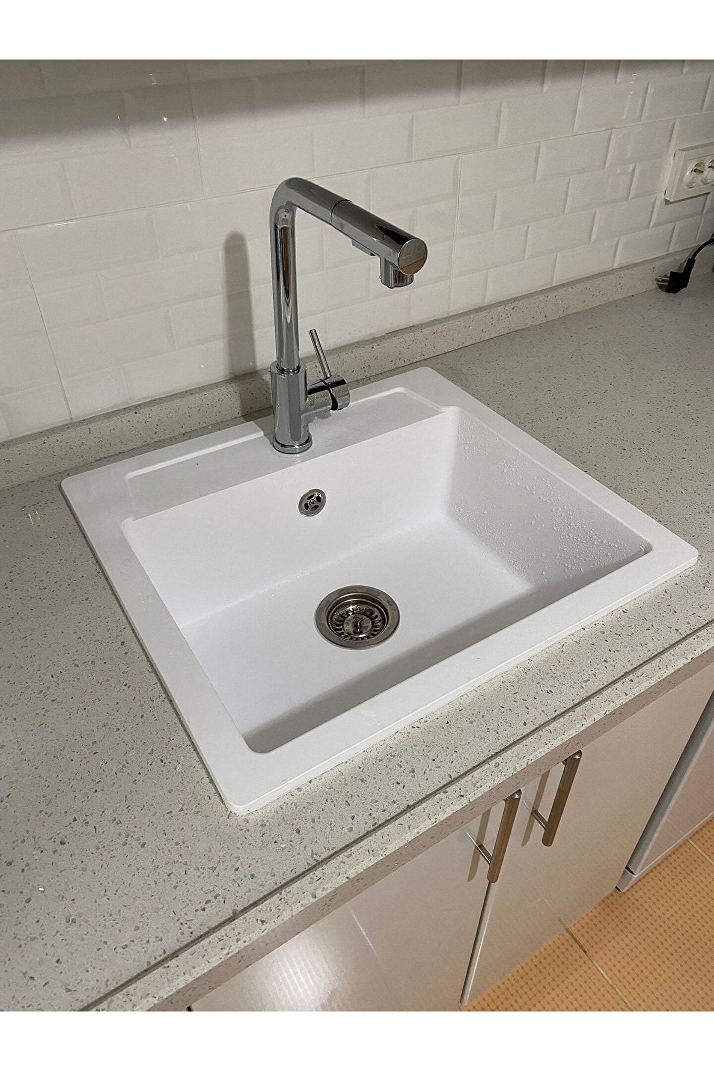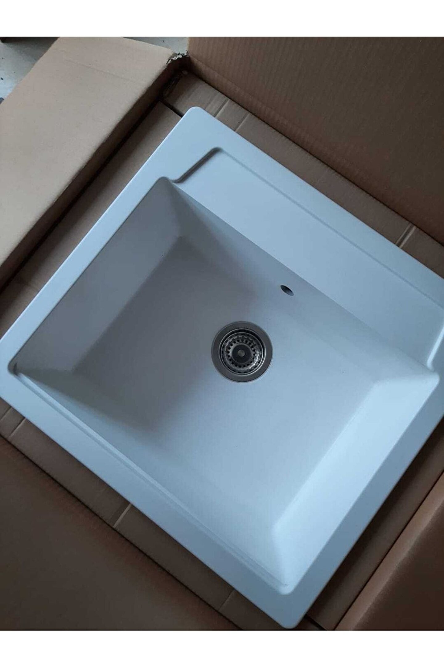 pares Elegance Granit Evye Beyaz Tek Gözlü Mutfak Evyesi 55 X 50 Cm