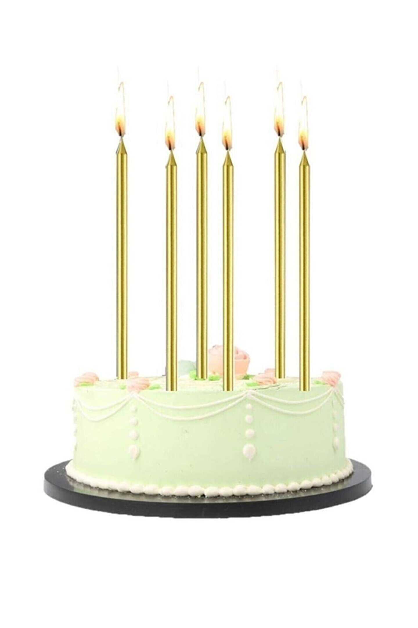 - Uzun Gold Pasta Mumu, 20 cm boyutuyla dikkat çeken şık bir tasarıma sahiptir.; - 6'lı set halinde sunulan bu mumlar, özel günlerde dekoratif bir dokunuş sağlar.; - Altın rengi parlaklığı ile mekanınıza zarafet katar ve göz alıcı bir atmosfer oluşturur.; - Uzun tasarım sayesinde uzun süreli yanma imkanı sunar ve mum ışığının keyfini daha uzun süre çıkarabilirsiniz.; - Pasta mumu olarak adlandırılan bu ürün, pasta sunumlarınıza estetik bir görünüm kazandırır.;