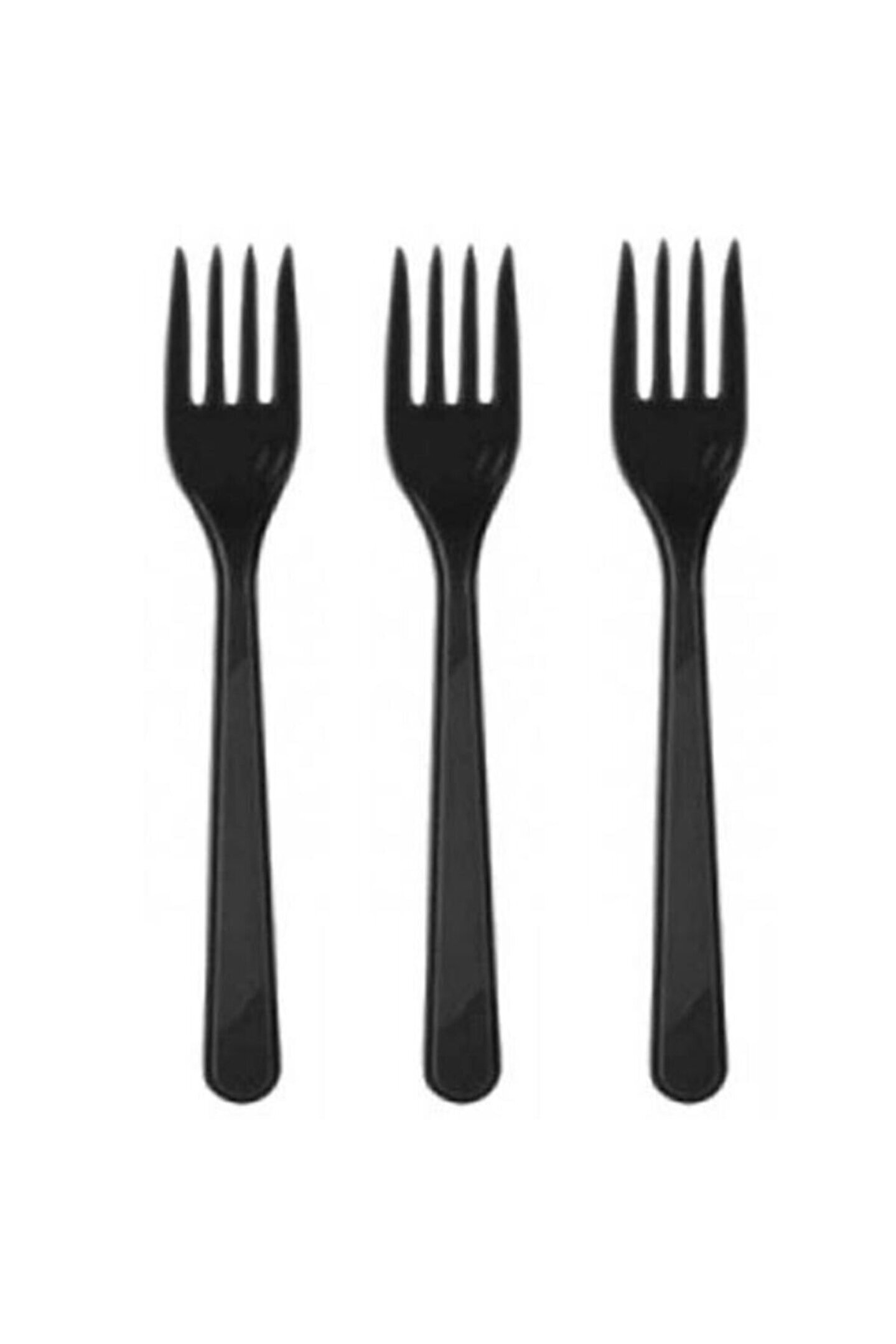 Siyah Renk Lüks Plastik Çatal 50 Adet