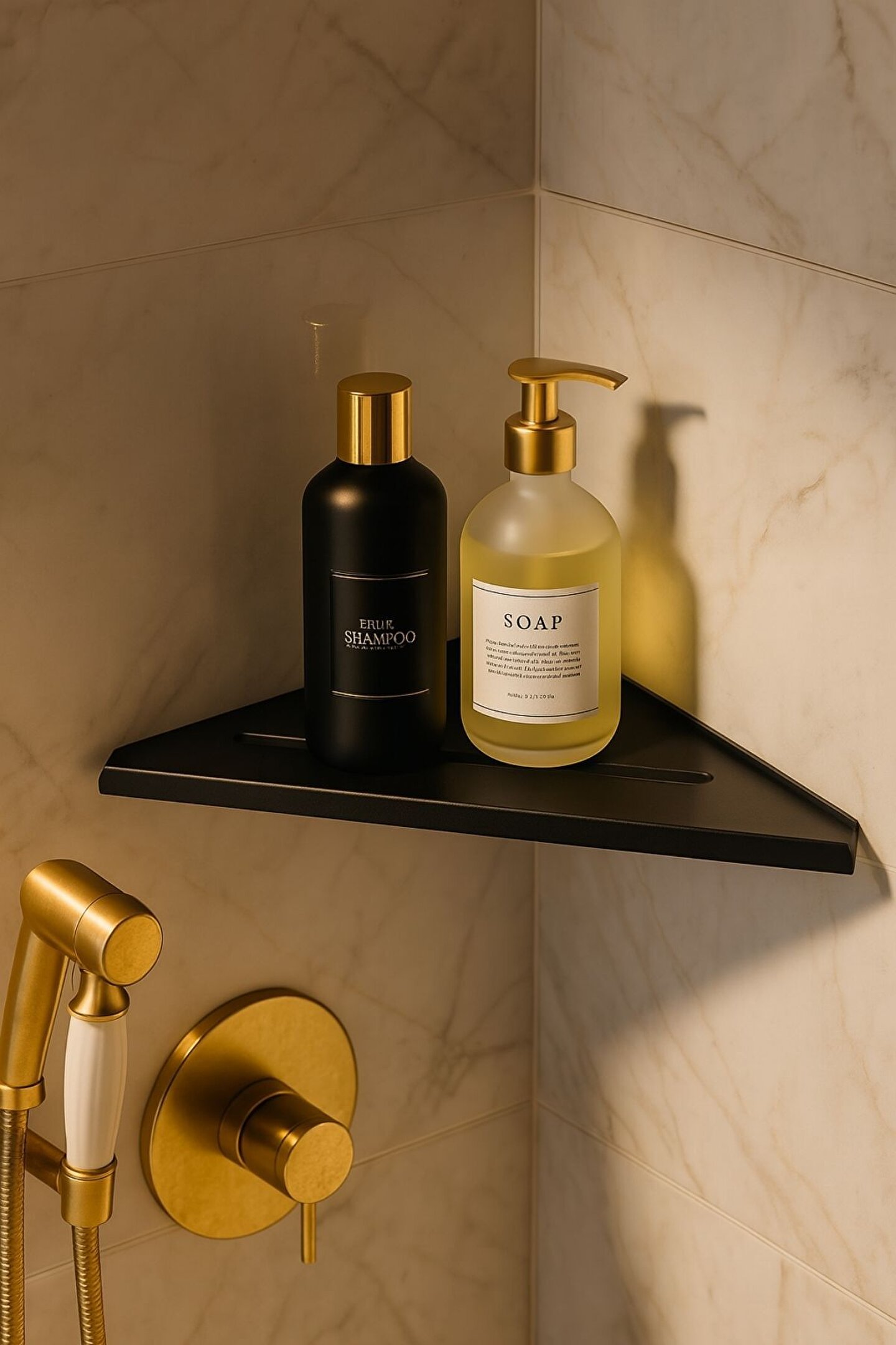 - Dayanıklı metal malzeme kullanılarak üretilmiş, uzun ömürlü ve sağlam bir yapı sunar.; - Materyalin kalitesi sayesinde duş alanınızda şık ve modern bir görünüm sağlar.; - Türkiye'de yerli üretim olarak tasarlanmıştır; yerel kaynakların kullanımını desteklerken ekonomik katkı sağlar.; - İki adet köşe tipi duş rafı ile banyonuzda ihtiyaç duyulan ekstra depolama alanı kazandırır.