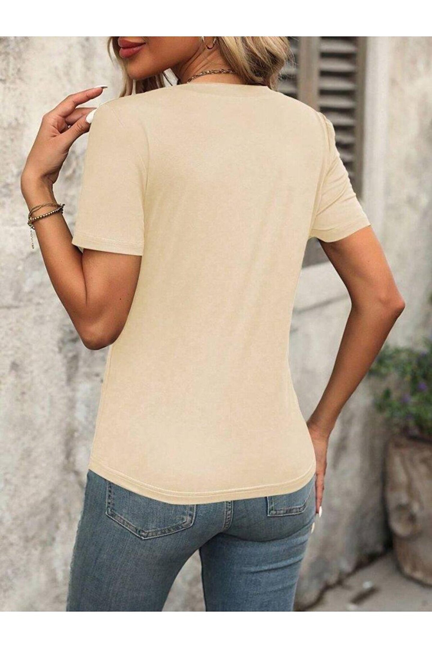 Kadın Kollu V Yakalı Omuzlarda çizgi Detaylı Viskon Bluz
