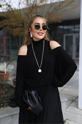 Kadın Triko Plise Ve Tül Detay Iki Parça Elbise