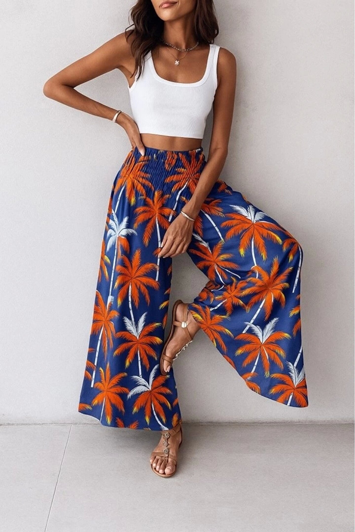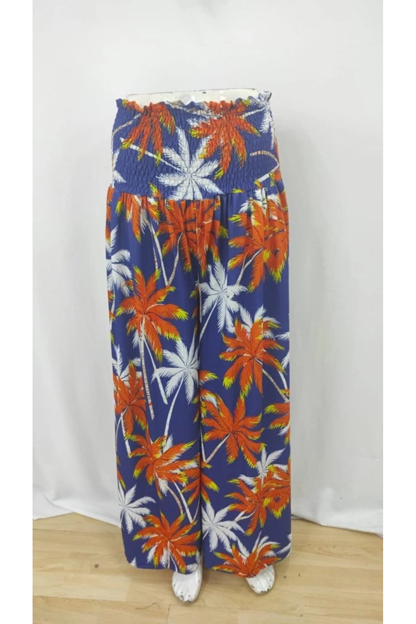 Pantaloni da donna in jersey singolo elasticizzato a vita alta con fantasia