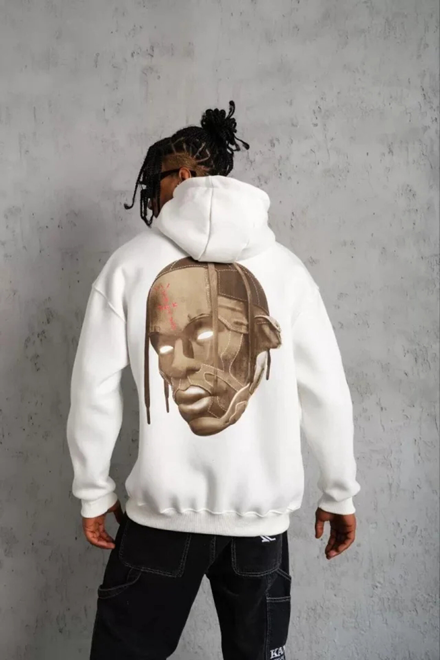 Erkek Kordonlu Arka Maske Kordon Saçlı Kapüşonlu - Beyaz