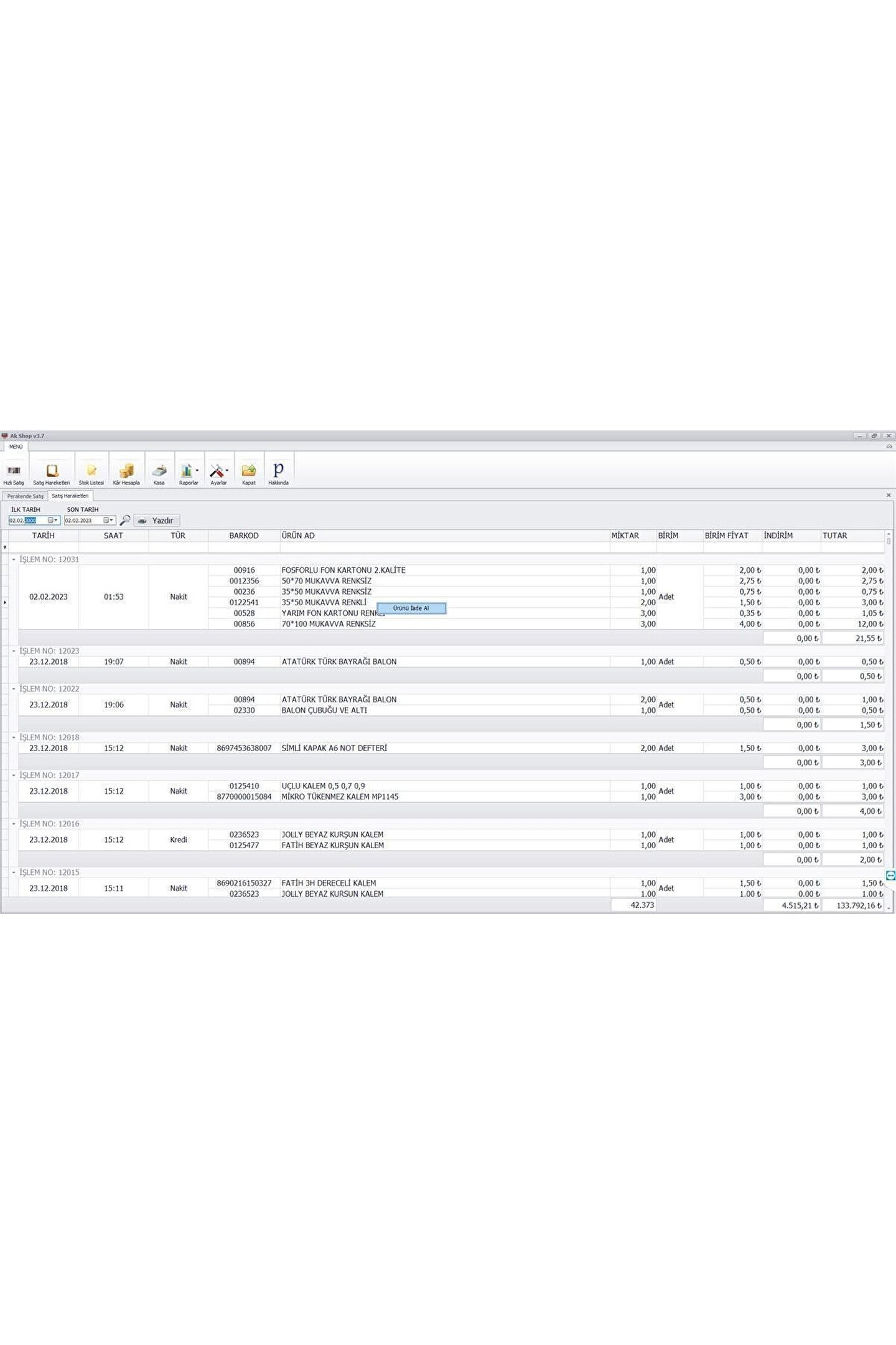 Barkodlu Satış Programı (1 Bilgisayara Özel Süresi Lisans) Ak Shop v3.7 Perakende Satış Programı , Barkodlu hızlı ve seri satış yapmak isteyen işletmeler için geliştirilmiştir.; Kullanışlı arayüzü ile zorluk yaşamadan kullanabileceğiniz, işyerinizi kolayca barkodlu satış uygulamasını geçirmenizde yardımcı olacak bir yazılımdır.; İşyerinizi yakınlarınıza emanet ettiğiniz zamanlarda yaşanabilecek eksik fiyatlardan ürün satışlarının önüne kolayca geçebilirsiniz.; Dokunmatik bilgisayarlar ile kullanılabilir.; Hızlı satış düğmeleri ile barkodsuz ürünleride kolayca bu sistemde kullanabileceksiniz.; Program Temel Özellikleri Barkodu olmayan ürünleri hızlı satış butonları ile kolayca satabilirsiniz.; ; Hızlı Satış butonları için ayrı ayrı grup sekmeleri oluştura bilirsiniz.; ; Hızlı Satış butonlarına ürün resimlerini ekleye bilirsiniz.; ; Müşteriler ödemelerinin bir kısmını Nakit bir kısmınıda Kredi Kartı ile yapabilir.; ; Ürün stok miktarlarını, ürün kartlarından kolayca değiştirebilirsiniz.; ; Ürün maliyeti hesaplatabilirsiniz.; ; Minimum Stok Miktarı uyarısı.; ; En Çok Satılan Ürünler ve En Çok Kâr Edilen Ürünleri grafik ile raporlama.; ; Filtreleme özelliği ile size aradığınız en uygun sonucu en kısa sürede getirecektir.; ; Satış sonunda müşterilerinize bilgi fişi verebilirsiniz.; ; Alınan para ve paraüstü iade özelliği ile eksik ya da fazla para vermenizi önler.; ; Yapılan satışları kasa bölümünden takip edebilirsiniz.; ; Satış miktarları raporu ile istediğiniz tarih aralıklarında hangi ürünlerin fazla sattığını görebilirsiniz.; ; Ciro raporu ile Cironuzu ve kazancınızı görebilirsiniz.; ; Satış işlemi sonrasında satılan ürünler otomatik olarak stokdan düşer.; ; Sepet özelliği ile aynı anda 4 faklı kişiye satış yapabilirsiniz.; ; Barkodlu Terazileri destekler.; ; Ürün satışı haricinde Gelir-Gider ekleyebilirsiniz.; ; Ürünlere 1 Fiyat tanımlayabilirsiniz.; ; Kullanıcı yetkilendirme.; ; -Kablolu Barkod Okuyucu Not: Kurulum Uzaktan bağlantı ile yapılmaktadır.; Sipariş verdikten sonra soru sor kısmından bizimle iletişime geçiniz.