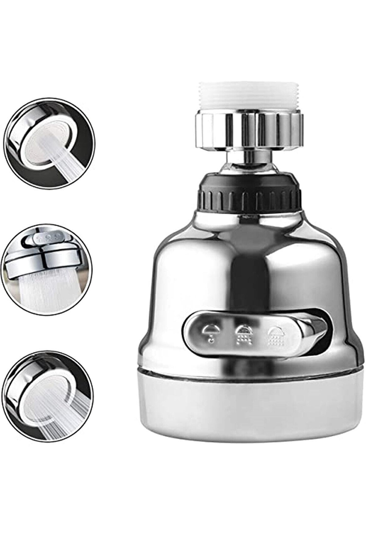PERA BANYO Krom 3 Fonksiyonlu Mutfak Lavabo Başlığı 360 Derece Döner Musluk Ucu Tasarruflu