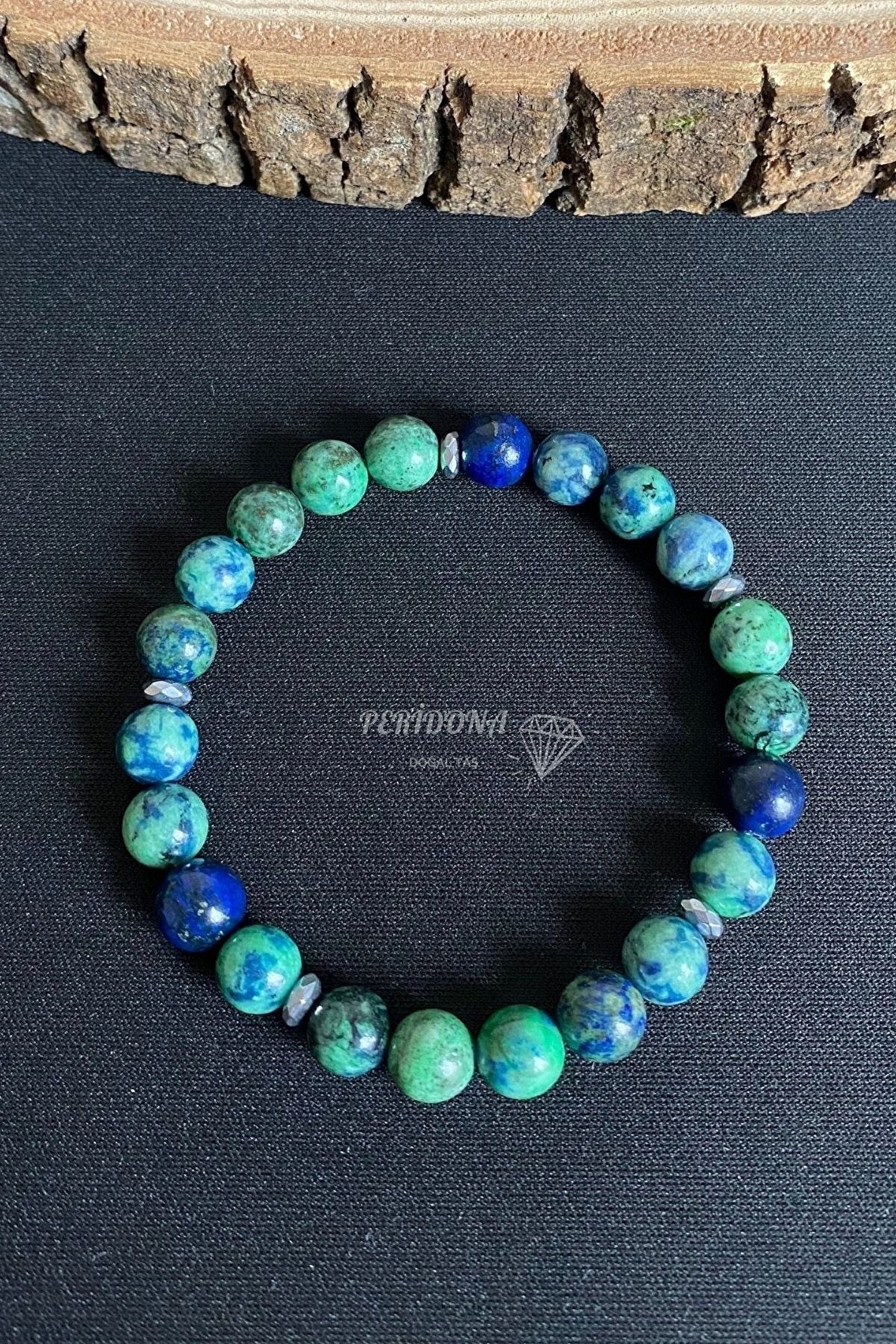 Peridona Azurit Taşı Doğal Taş Bileklik Mutluluk Migren