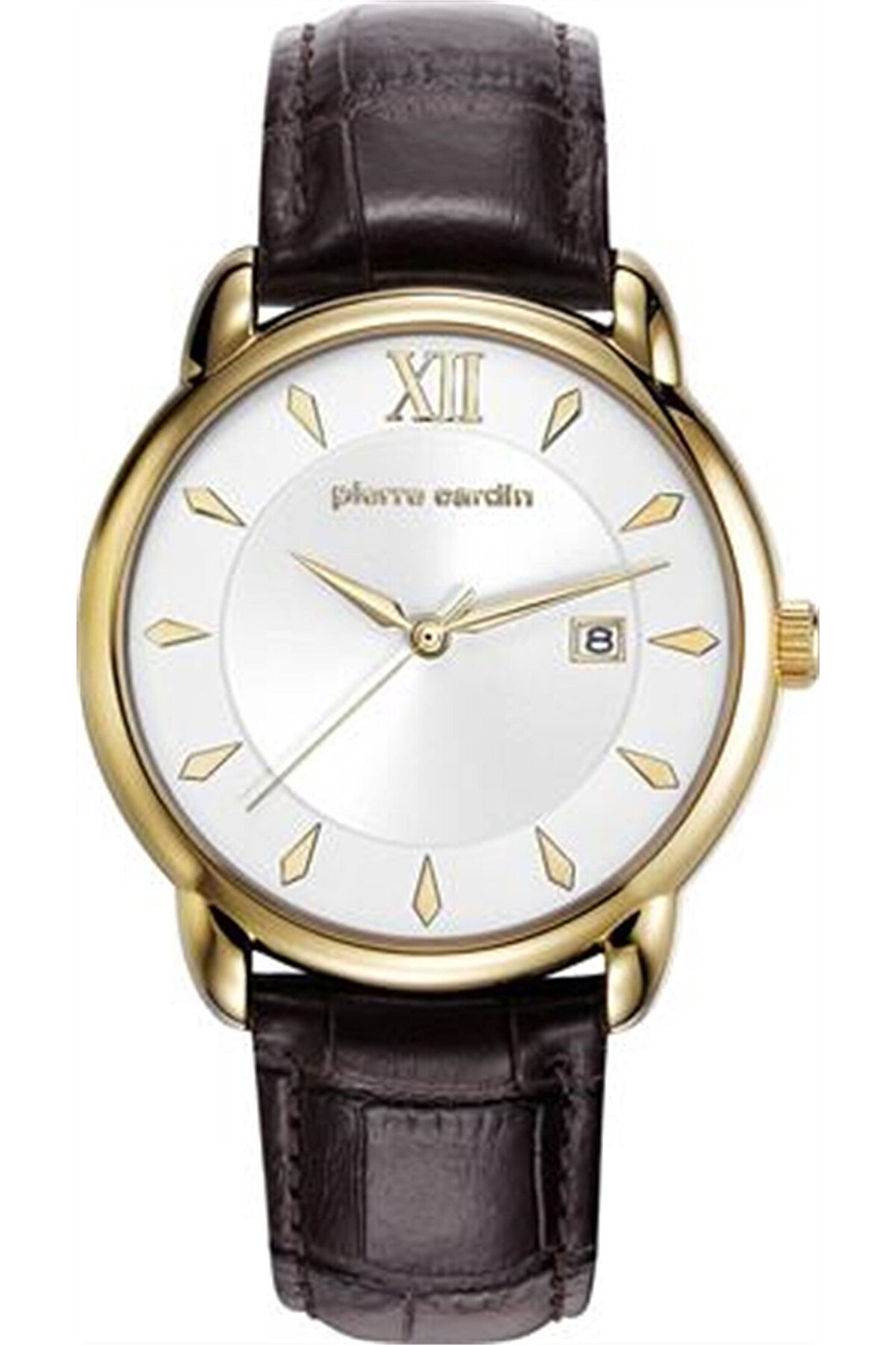 Marka: Pierre Cardin Cinsiyet : Erkek Makine Tipi: Quartz Kordon Tipi: Deri Kordon Rengi: Kahverengi Kasa Tipi: Çelik Kasa Rengi: Sarı Kasa Şekli Yuvarlak Kadran Şekli: Yuvarlak Kadran Rengi: Beyaz Cam Tipi Mineral Kasa Çapı 40mm Su Geçirmezlik 30m Takvim: Var Alarm Taş Yok