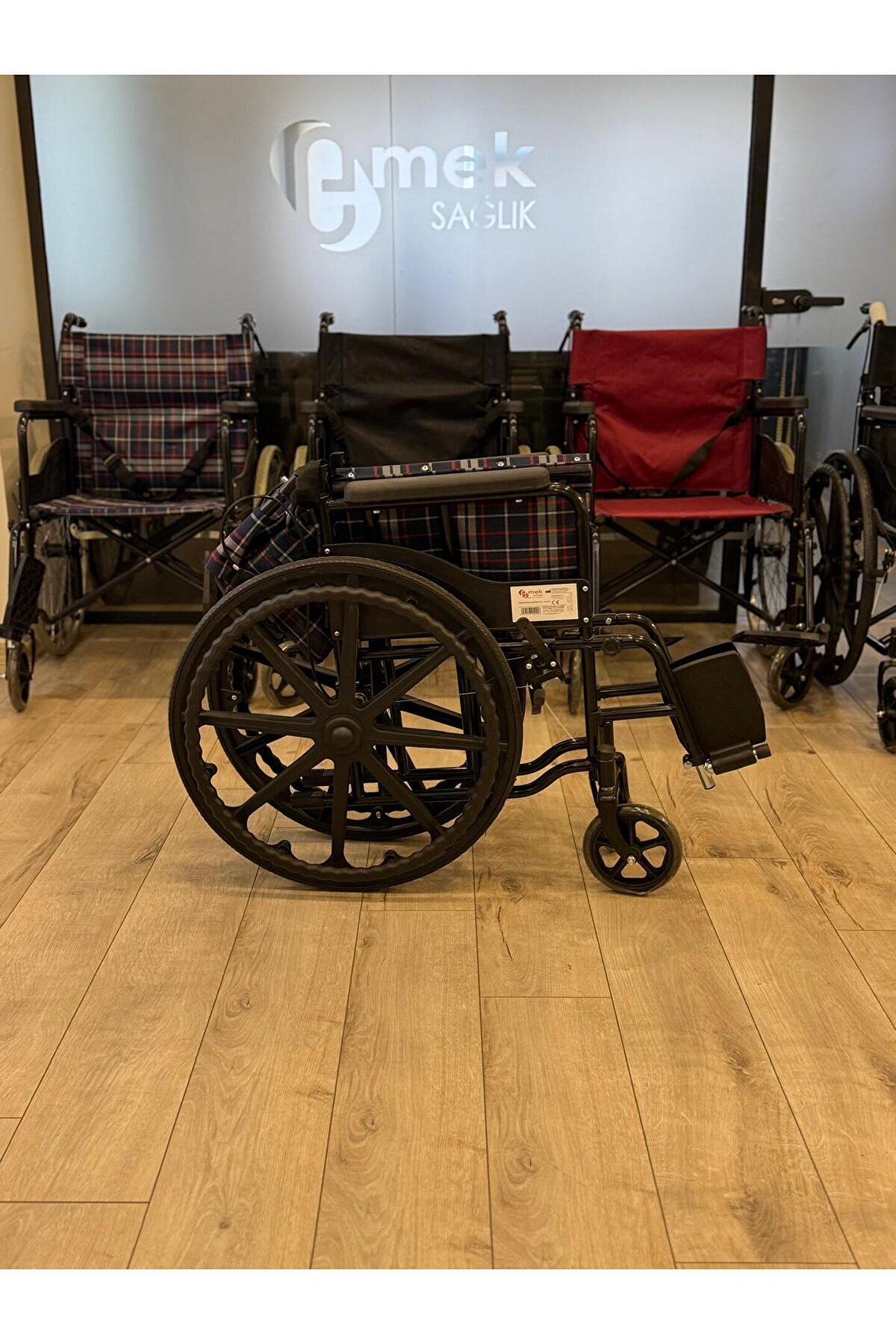 Şase : Elektrostatik Boyalı Çelik Ön Teker : 8"x1.25" dolgu Arka Teker : 24" dolgu Oturma Genişliği : 18" (46 cm) Taşıma Kapasitesi : Maximum 120 kg Kolçak : Sabit, PVC Ayaklık : Sabit Kumaş : Ekose döşeme (alev ) Sırtlık : Sabit; Sırt kısmı katlanabilen ayak kısmı çıkarılabilen manuel tekerlekli sandalye