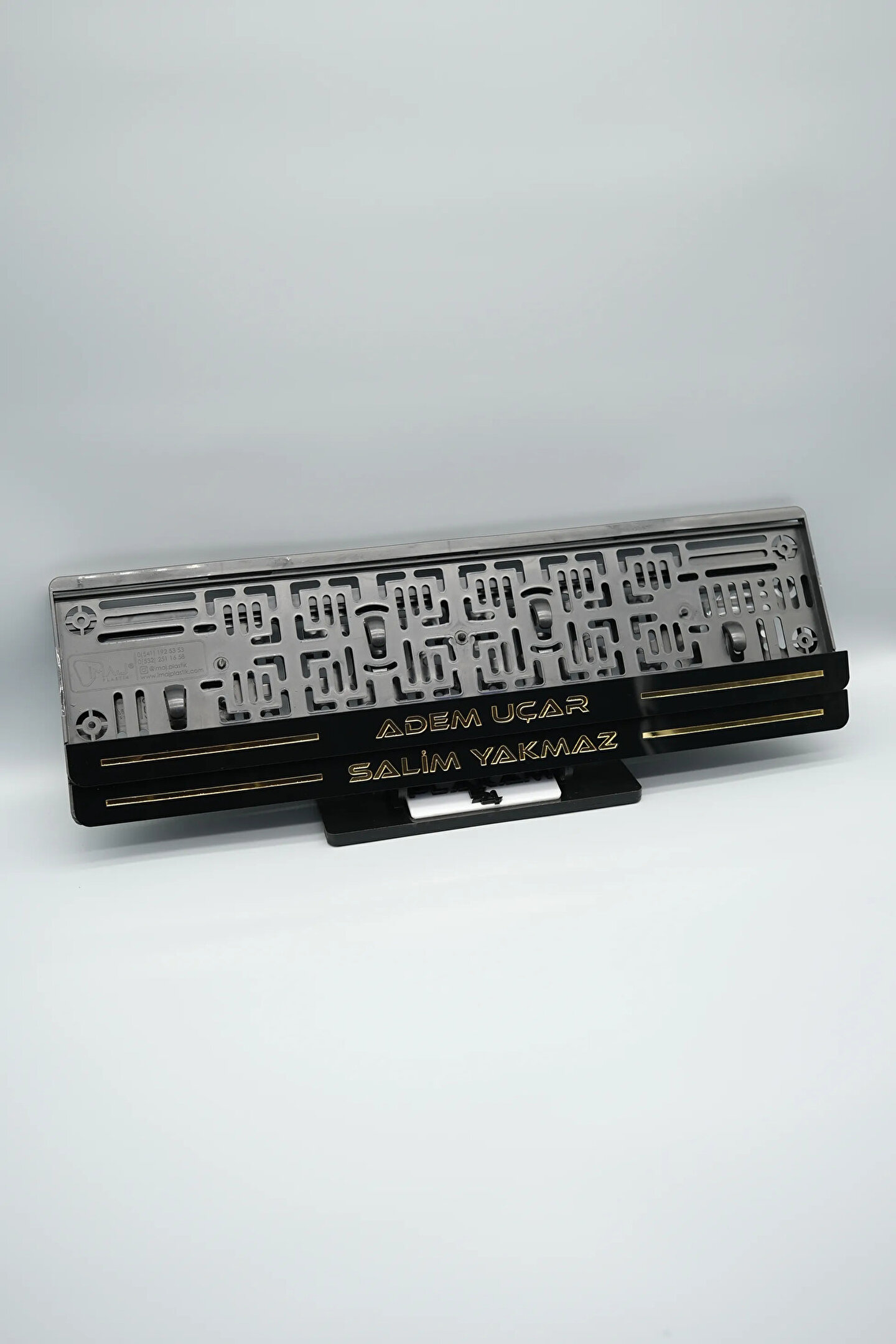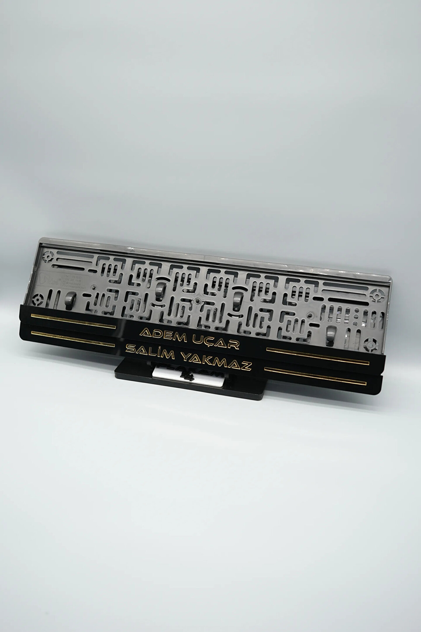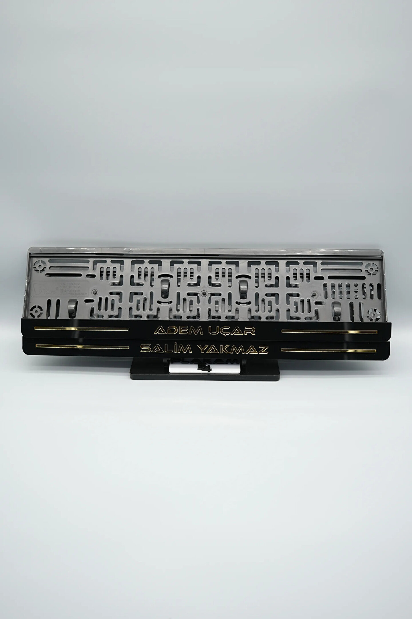 Sıradanı Sıradışıya Çevir! Lazer Kesim Plakalıklarımızla Tanışın!; Özellikler:; Alt çıta ve plakalık olmak üzere toplam 4 parçadan oluşur.; 3D kabartmalı veya gümüş tasarımı ile dikkat çeker.; UV baskı değil, silinme veya dökülme yapmaz.; Standart araba plakası ölçülerindedir (11x52 cm plakalar için uygundur).; Kalite ve Şıklığı Bir Arada Sunuyoruz:; Ürünlerimiz, parlak 1. sınıf kalitede pleksiyi lazer kesim kullanılarak özel yapıştırıcılarla birleştirilerek üretilir.; Sadece plaka değil, aracınıza özgü bir tarz katmanın en havalı yolu!; Dayanıklılıkta Sınır Tanımıyoruz:; Uzun süreli kullanıma uygun olan plakalıklarımız, özel yapıştırıcı teknolojisi ile birleşerek aracınızın stilini korur.; Silinme veya dökülme gibi sorunlarla karşılaşmadan uzun ömürlü bir deneyim sunar.; 3D Kabartmalı Tasarım:; Plakalıklarımızın eşsiz 3D kabartma tasarımı, sizi diğer araçlardan farklı kılacak.; Görsel şölenimiz aracınıza estetik bir dokunuş katıyor.; Kolay Montaj, Büyük Etki:; Aracınıza özel tasarımı hemen kullanmaya başlamak için ürünlerimizin montajı oldukça basittir.; Size zahmetsiz bir kişiselleştirme deneyimi sunuyoruz.;Gerçek Görseller, Gerçek Ürün:; ürün görsellerimizle alacağınız ürün arasında çita malzeme fark yok.; Ürün özellikleri ile ilgili olan sorularınızı ürünün altında yer alan Satıcı Soruları bölümünü tıklayarak sorabilirsiniz.;Siparişiniz ile ilgili sorularınızı veya taleplerinizi Sipariş Detay'da yer alan Soru Sor bölümünden iletebilirsiniz.;Siparişi oluşturduktan sonra Örnek sipariş:"Sipariş numaram: 1111111111, Plakalık Üstüne Yazılacak yazı: ADINIZ SOYADINIZ Üstübi"şeklinde bizlere sipariş bilgilerinizi iletebilirsiniz.;Sipariş sonrası ürün soru sor kısmına üründeki seçmiş olduğunuz plakalığa yazılacak yazıyı belirtiniz.;Yazınızı belirtmediğiniz taktirde görselde yer alan modele siparişteki isim yazılarak gönderilecektir.; Farklı modeller için diğer ürünlerimizi inceleyebilirsiniz.;Ürünlerimiz takım olup 2 adet gönderilecektir.;Plaka çerçevesine yazmak istediğiniz en fazla 30 karakter giriniz; NOT Büyük Küçük harf Font uyumuna bağlıdır Küçük Harfler ile yazlı olan bilgileriniz font uyumlu ise küçük harflerde kullanılır.;Güvenle satın alın ve aracınızı şık ve özgün kılın.; Aracınızı Kişiselleştirin, Stilinizi Yansıtın!;