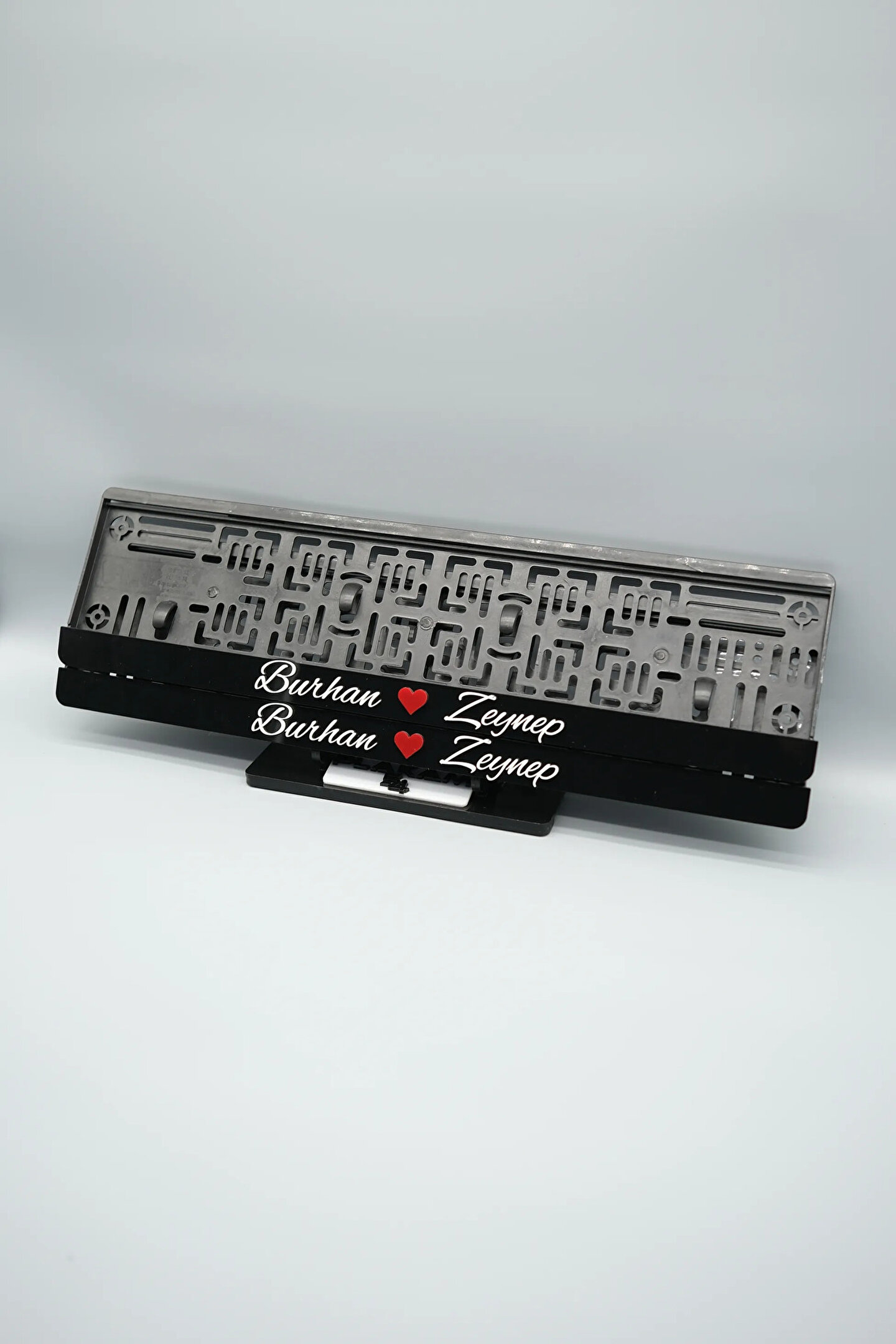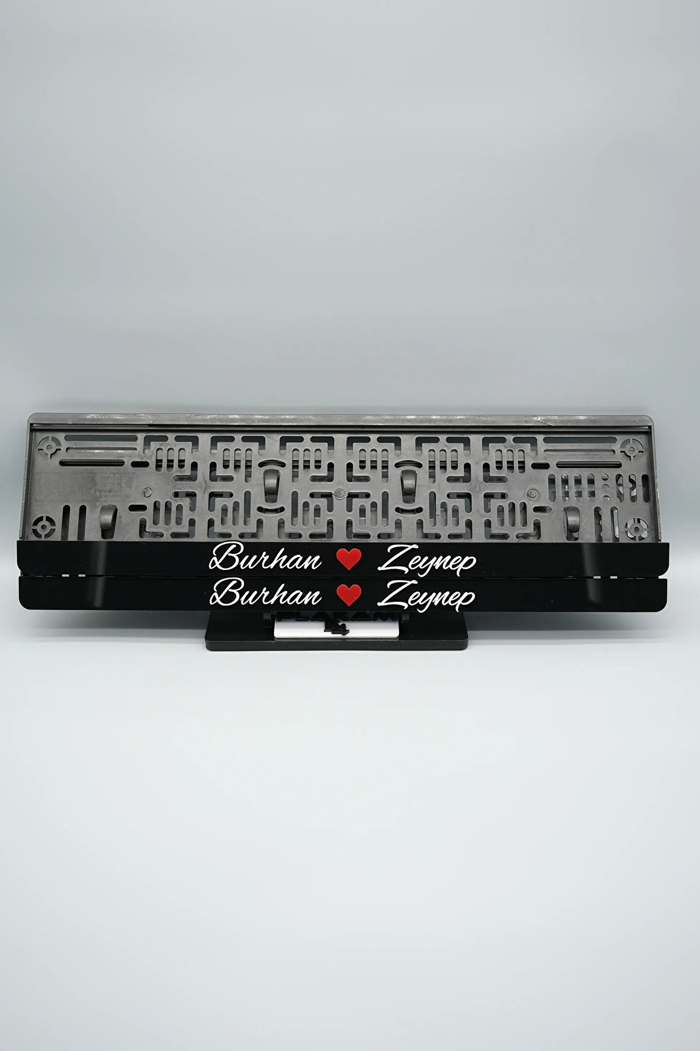 Sıradanı Sıradışıya Çevir! Lazer Kesim Plakalıklarımızla Tanışın!; Özellikler:; Alt çıta ve plakalık olmak üzere toplam 4 parçadan oluşur.; 3D kabartmalı veya gümüş tasarımı ile dikkat çeker.; UV baskı değil, silinme veya dökülme yapmaz.; Standart araba plakası ölçülerindedir (11x52 cm plakalar için uygundur).; Kalite ve Şıklığı Bir Arada Sunuyoruz:; Ürünlerimiz, parlak 1. sınıf kalitede pleksiyi lazer kesim kullanılarak özel yapıştırıcılarla birleştirilerek üretilir.; Sadece plaka değil, aracınıza özgü bir tarz katmanın en havalı yolu!; Dayanıklılıkta Sınır Tanımıyoruz:; Uzun süreli kullanıma uygun olan plakalıklarımız, özel yapıştırıcı teknolojisi ile birleşerek aracınızın stilini korur.; Silinme veya dökülme gibi sorunlarla karşılaşmadan uzun ömürlü bir deneyim sunar.; 3D Kabartmalı Tasarım:; Plakalıklarımızın eşsiz 3D kabartma tasarımı, sizi diğer araçlardan farklı kılacak.; Görsel şölenimiz aracınıza estetik bir dokunuş katıyor.; Kolay Montaj, Büyük Etki:; Aracınıza özel tasarımı hemen kullanmaya başlamak için ürünlerimizin montajı oldukça basittir.; Size zahmetsiz bir kişiselleştirme deneyimi sunuyoruz.;Gerçek Görseller, Gerçek Ürün:; ürün görsellerimizle alacağınız ürün arasında çita malzeme fark yok.; Ürün özellikleri ile ilgili olan sorularınızı ürünün altında yer alan Satıcı Soruları bölümünü tıklayarak sorabilirsiniz.;Siparişiniz ile ilgili sorularınızı veya taleplerinizi Sipariş Detay'da yer alan Soru Sor bölümünden iletebilirsiniz.;Siparişi oluşturduktan sonra Örnek sipariş:"Sipariş numaram: 1111111111, Plakalık Üstüne Yazılacak yazı: ADINIZ SOYADINIZ Üstübi"şeklinde bizlere sipariş bilgilerinizi iletebilirsiniz.;Sipariş sonrası ürün soru sor kısmına üründeki seçmiş olduğunuz plakalığa yazılacak yazıyı belirtiniz.;Yazınızı belirtmediğiniz taktirde görselde yer alan modele siparişteki isim yazılarak gönderilecektir.; Farklı modeller için diğer ürünlerimizi inceleyebilirsiniz.;Ürünlerimiz takım olup 2 adet gönderilecektir.;Plaka çerçevesine yazmak istediğiniz en fazla 30 karakter giriniz; NOT Büyük Küçük harf Font uyumuna bağlıdır Küçük Harfler ile yazlı olan bilgileriniz font uyumlu ise küçük harflerde kullanılır.;Güvenle satın alın ve aracınızı şık ve özgün kılın.; Aracınızı Kişiselleştirin, Stilinizi Yansıtın!;