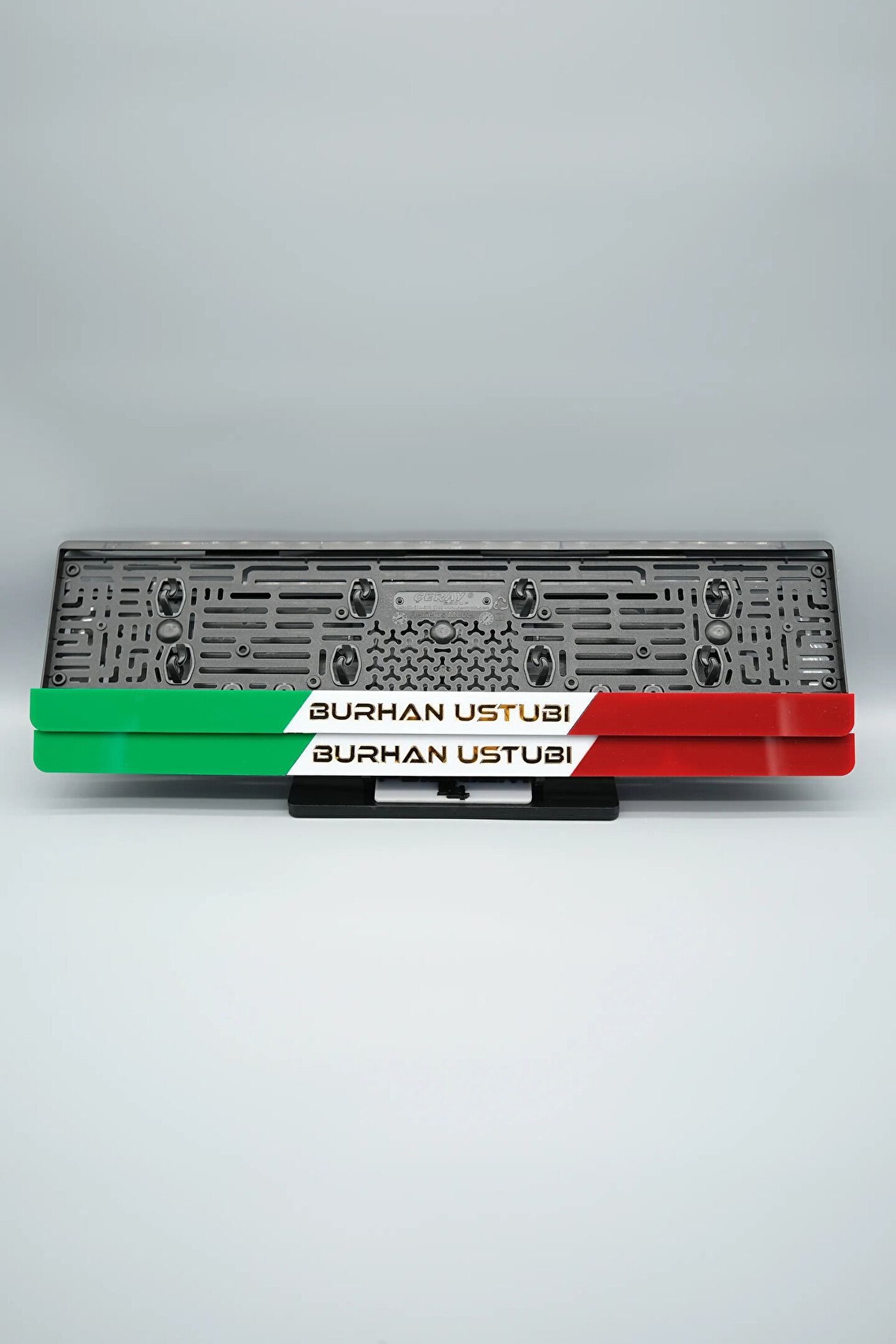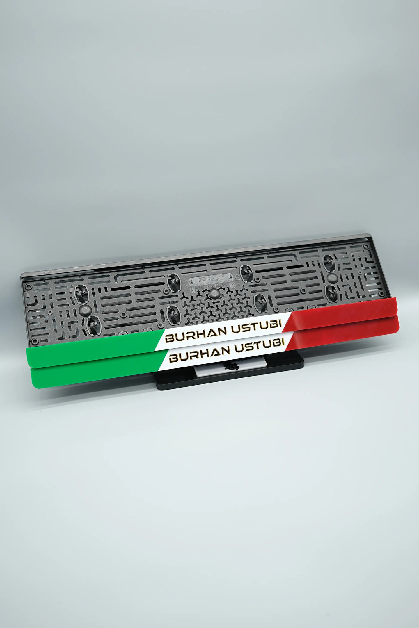 Sıradanı Sıradışıya Çevir! Lazer Kesim Plakalıklarımızla Tanışın!; Özellikler:; Alt çıta ve plakalık olmak üzere toplam 4 parçadan oluşur.; 3D kabartmalı veya gümüş tasarımı ile dikkat çeker.; UV baskı değil, silinme veya dökülme yapmaz.; Standart araba plakası ölçülerindedir (11x52 cm plakalar için uygundur).; Kalite ve Şıklığı Bir Arada Sunuyoruz:; Ürünlerimiz, parlak 1. sınıf kalitede pleksiyi lazer kesim kullanılarak özel yapıştırıcılarla birleştirilerek üretilir.; Sadece plaka değil, aracınıza özgü bir tarz katmanın en havalı yolu!; Dayanıklılıkta Sınır Tanımıyoruz:; Uzun süreli kullanıma uygun olan plakalıklarımız, özel yapıştırıcı teknolojisi ile birleşerek aracınızın stilini korur.; Silinme veya dökülme gibi sorunlarla karşılaşmadan uzun ömürlü bir deneyim sunar.; 3D Kabartmalı Tasarım:; Plakalıklarımızın eşsiz 3D kabartma tasarımı, sizi diğer araçlardan farklı kılacak.; Görsel şölenimiz aracınıza estetik bir dokunuş katıyor.; Kolay Montaj, Büyük Etki:; Aracınıza özel tasarımı hemen kullanmaya başlamak için ürünlerimizin montajı oldukça basittir.; Size zahmetsiz bir kişiselleştirme deneyimi sunuyoruz.;Gerçek Görseller, Gerçek Ürün:; ürün görsellerimizle alacağınız ürün arasında çita malzeme fark yok.; Ürün özellikleri ile ilgili olan sorularınızı ürünün altında yer alan Satıcı Soruları bölümünü tıklayarak sorabilirsiniz.;Siparişiniz ile ilgili sorularınızı veya taleplerinizi Sipariş Detay'da yer alan Soru Sor bölümünden iletebilirsiniz.;Siparişi oluşturduktan sonra Örnek sipariş:"Sipariş numaram: 1111111111, Plakalık Üstüne Yazılacak yazı: ADINIZ SOYADINIZ Üstübi"şeklinde bizlere sipariş bilgilerinizi iletebilirsiniz.;Sipariş sonrası ürün soru sor kısmına üründeki seçmiş olduğunuz plakalığa yazılacak yazıyı belirtiniz.;Yazınızı belirtmediğiniz taktirde görselde yer alan modele siparişteki isim yazılarak gönderilecektir.; Farklı modeller için diğer ürünlerimizi inceleyebilirsiniz.;Ürünlerimiz takım olup 2 adet gönderilecektir.;Plaka çerçevesine yazmak istediğiniz en fazla 30 karakter giriniz; NOT Büyük Küçük harf Font uyumuna bağlıdır Küçük Harfler ile yazlı olan bilgileriniz font uyumlu ise küçük harflerde kullanılır.;Güvenle satın alın ve aracınızı şık ve özgün kılın.; Aracınızı Kişiselleştirin, Stilinizi Yansıtın!;