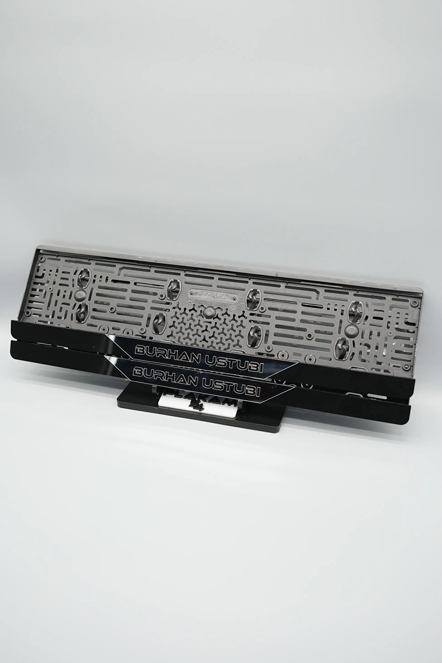 Sıradanı Sıradışıya Çevir! Lazer Kesim Plakalıklarımızla Tanışın!; Özellikler:; Alt çıta ve plakalık olmak üzere toplam 4 parçadan oluşur.; 3D kabartmalı veya gümüş tasarımı ile dikkat çeker.; UV baskı değil, silinme veya dökülme yapmaz.; Standart araba plakası ölçülerindedir (11x52 cm plakalar için uygundur).; Kalite ve Şıklığı Bir Arada Sunuyoruz:; Ürünlerimiz, parlak 1. sınıf kalitede pleksiyi lazer kesim kullanılarak özel yapıştırıcılarla birleştirilerek üretilir.; Sadece plaka değil, aracınıza özgü bir tarz katmanın en havalı yolu!; Dayanıklılıkta Sınır Tanımıyoruz:; Uzun süreli kullanıma uygun olan plakalıklarımız, özel yapıştırıcı teknolojisi ile birleşerek aracınızın stilini korur.; Silinme veya dökülme gibi sorunlarla karşılaşmadan uzun ömürlü bir deneyim sunar.; 3D Kabartmalı Tasarım:; Plakalıklarımızın eşsiz 3D kabartma tasarımı, sizi diğer araçlardan farklı kılacak.; Görsel şölenimiz aracınıza estetik bir dokunuş katıyor.; Kolay Montaj, Büyük Etki:; Aracınıza özel tasarımı hemen kullanmaya başlamak için ürünlerimizin montajı oldukça basittir.; Size zahmetsiz bir kişiselleştirme deneyimi sunuyoruz.;Gerçek Görseller, Gerçek Ürün:; ürün görsellerimizle alacağınız ürün arasında çita malzeme fark yok.; Ürün özellikleri ile ilgili olan sorularınızı ürünün altında yer alan Satıcı Soruları bölümünü tıklayarak sorabilirsiniz.;Siparişiniz ile ilgili sorularınızı veya taleplerinizi Sipariş Detay'da yer alan Soru Sor bölümünden iletebilirsiniz.;Siparişi oluşturduktan sonra Örnek sipariş:"Sipariş numaram: 1111111111, Plakalık Üstüne Yazılacak yazı: ADINIZ SOYADINIZ Üstübi"şeklinde bizlere sipariş bilgilerinizi iletebilirsiniz.;Sipariş sonrası ürün soru sor kısmına üründeki seçmiş olduğunuz plakalığa yazılacak yazıyı belirtiniz.;Yazınızı belirtmediğiniz taktirde görselde yer alan modele siparişteki isim yazılarak gönderilecektir.; Farklı modeller için diğer ürünlerimizi inceleyebilirsiniz.;Ürünlerimiz takım olup 2 adet gönderilecektir.;Plaka çerçevesine yazmak istediğiniz en fazla 30 karakter giriniz; NOT Büyük Küçük harf Font uyumuna bağlıdır Küçük Harfler ile yazlı olan bilgileriniz font uyumlu ise küçük harflerde kullanılır.;Güvenle satın alın ve aracınızı şık ve özgün kılın.; Aracınızı Kişiselleştirin, Stilinizi Yansıtın!;