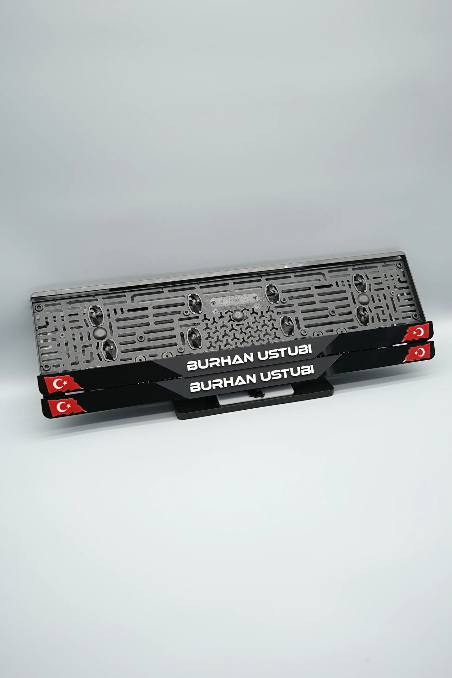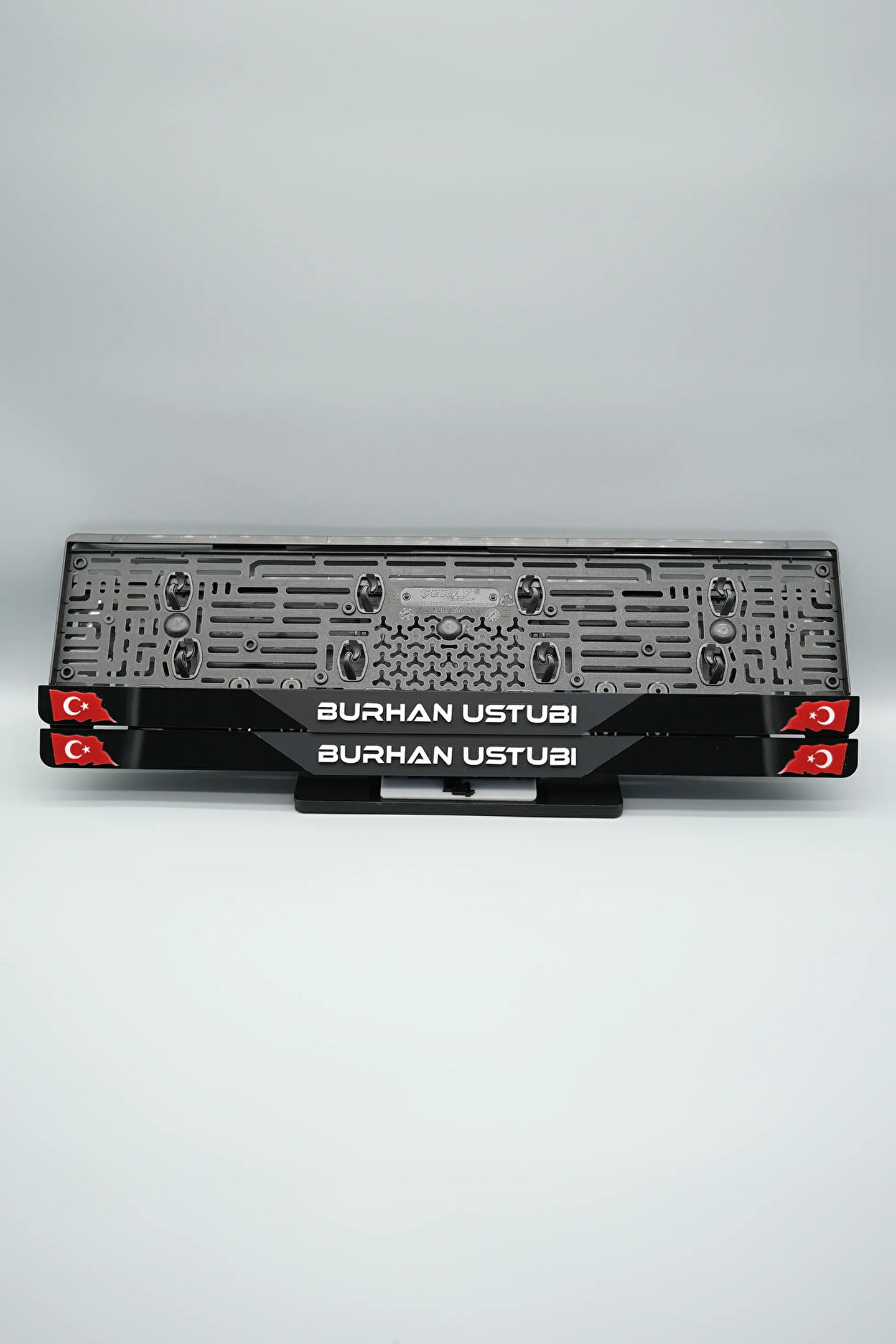 Sıradanı Sıradışıya Çevir! Lazer Kesim Plakalıklarımızla Tanışın!; Özellikler:; Alt çıta ve plakalık olmak üzere toplam 4 parçadan oluşur.; 3D kabartmalı veya gümüş tasarımı ile dikkat çeker.; UV baskı değil, silinme veya dökülme yapmaz.; Standart araba plakası ölçülerindedir (11x52 cm plakalar için uygundur).; Kalite ve Şıklığı Bir Arada Sunuyoruz:; Ürünlerimiz, parlak 1. sınıf kalitede pleksiyi lazer kesim kullanılarak özel yapıştırıcılarla birleştirilerek üretilir.; Sadece plaka değil, aracınıza özgü bir tarz katmanın en havalı yolu!; Dayanıklılıkta Sınır Tanımıyoruz:; Uzun süreli kullanıma uygun olan plakalıklarımız, özel yapıştırıcı teknolojisi ile birleşerek aracınızın stilini korur.; Silinme veya dökülme gibi sorunlarla karşılaşmadan uzun ömürlü bir deneyim sunar.; 3D Kabartmalı Tasarım:; Plakalıklarımızın eşsiz 3D kabartma tasarımı, sizi diğer araçlardan farklı kılacak.; Görsel şölenimiz aracınıza estetik bir dokunuş katıyor.; Kolay Montaj, Büyük Etki:; Aracınıza özel tasarımı hemen kullanmaya başlamak için ürünlerimizin montajı oldukça basittir.; Size zahmetsiz bir kişiselleştirme deneyimi sunuyoruz.;Gerçek Görseller, Gerçek Ürün:; ürün görsellerimizle alacağınız ürün arasında çita malzeme fark yok.; Ürün özellikleri ile ilgili olan sorularınızı ürünün altında yer alan Satıcı Soruları bölümünü tıklayarak sorabilirsiniz.;Siparişiniz ile ilgili sorularınızı veya taleplerinizi Sipariş Detay'da yer alan Soru Sor bölümünden iletebilirsiniz.;Siparişi oluşturduktan sonra Örnek sipariş:"Sipariş numaram: 1111111111, Plakalık Üstüne Yazılacak yazı: ADINIZ SOYADINIZ Üstübi"şeklinde bizlere sipariş bilgilerinizi iletebilirsiniz.;Sipariş sonrası ürün soru sor kısmına üründeki seçmiş olduğunuz plakalığa yazılacak yazıyı belirtiniz.;Yazınızı belirtmediğiniz taktirde görselde yer alan modele siparişteki isim yazılarak gönderilecektir.; Farklı modeller için diğer ürünlerimizi inceleyebilirsiniz.;Ürünlerimiz takım olup 2 adet gönderilecektir.;Plaka çerçevesine yazmak istediğiniz en fazla 30 karakter giriniz; NOT Büyük Küçük harf Font uyumuna bağlıdır Küçük Harfler ile yazlı olan bilgileriniz font uyumlu ise küçük harflerde kullanılır.;Güvenle satın alın ve aracınızı şık ve özgün kılın.; Aracınızı Kişiselleştirin, Stilinizi Yansıtın!;