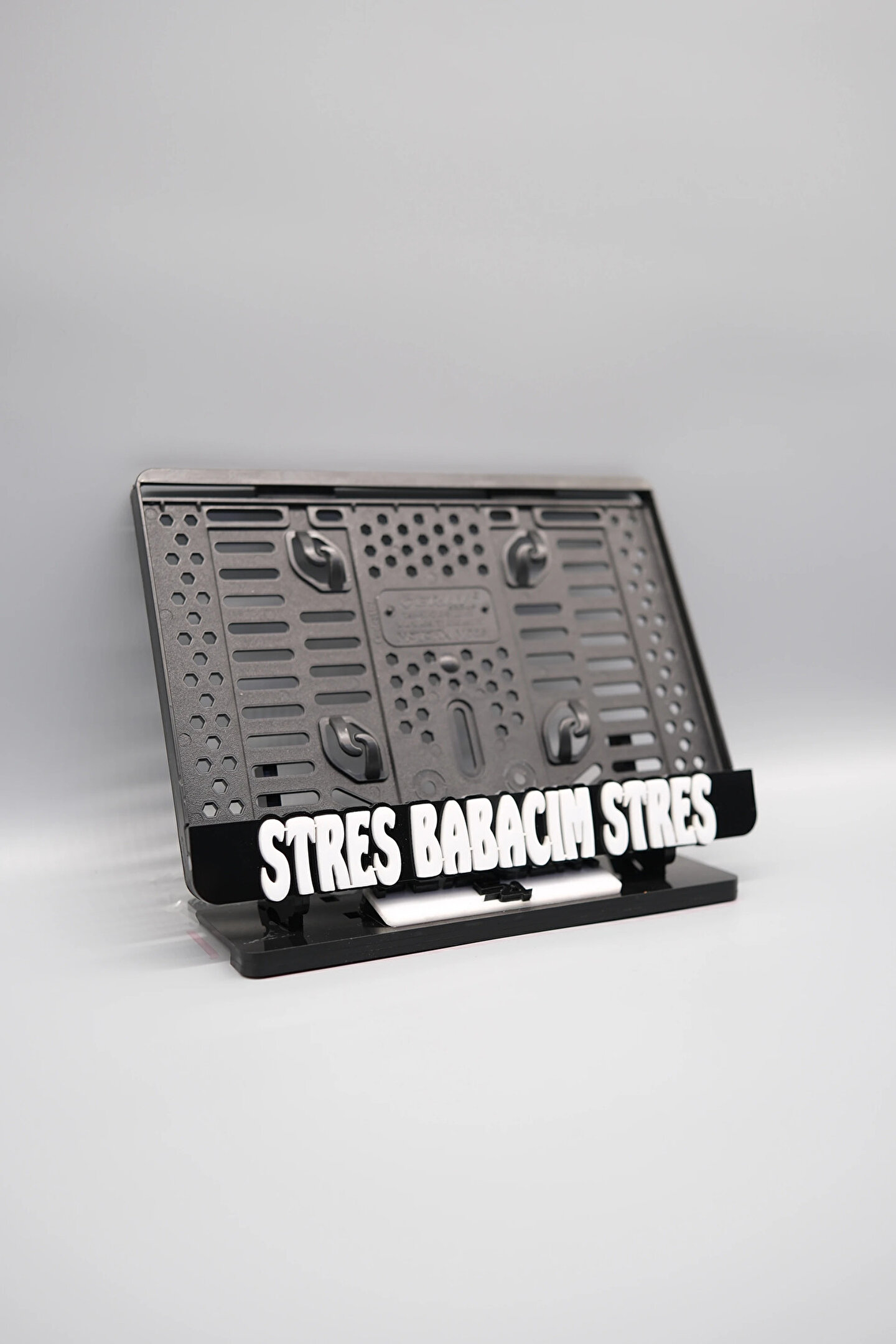 Plakam54 STRES BABACIM STRES 3D KABARTMALI SİYAH PLEKSİ MOTOR PLAKALIĞI