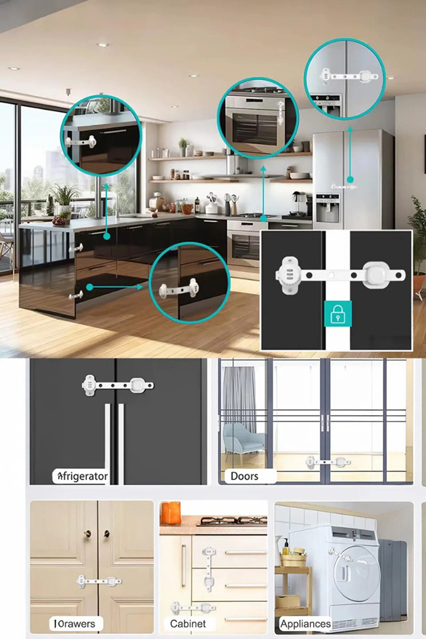 Numaratör Şifreli Çok Amaçlı Esnek Dolap ve Çekmece Kilidi Bebeğinizin güvenliği için özel olarak tasarlanmış Agubugu Baby Numaratör Şifreli Çok Amaçlı Esnek Dolap ve Çekmece Kilidi, evinizdeki dolapları, çekmeceleri, buzdolabını ve diğer eşyaları güvenle kilitlemenize yardımcı olur.; Yüksek kaliteli, dayanıklı malzemeden üretilmiş olup, esnek yapısı sayesinde farklı yüzeylere kolayca adapte olur.; Şifreli Güvenlik Mekanizması: Anahtar gerektirmeyen numaratörlü kilit sistemi ile ekstra güvenlik sağlar.; Bebeğiniz veya küçük çocuğunuz tarafından açılması mümkün değildir.; Çok Amaçlı Kullanım: Buzdolabı, çekmece, dolap, çamaşır makinesi, klozet kapağı, fırın ve daha birçok alanda kullanılabilir.; Kolay Kurulum: Güçlü 3M yapışkan bantları sayesinde vidalama gerektirmez, yüzeye zarar vermeden sağlam bir tutuş sağlar.; Esnek ve Dayanıklı: Yüksek kaliteli ABS ve TPE malzemeden üretilmiş olup, dayanıklı ve esnek yapısı sayesinde farklı yüzeylere kolayca uygulanır.; Ebeveyn Dostu Tasarım: Erişimi kolay şifreli kilit mekanizması sayesinde yetişkinler için pratik kullanım sunarken, çocukların açmasını önler.; Agubugu Baby ile minik kaşiflerin güvenliğini sağlayın