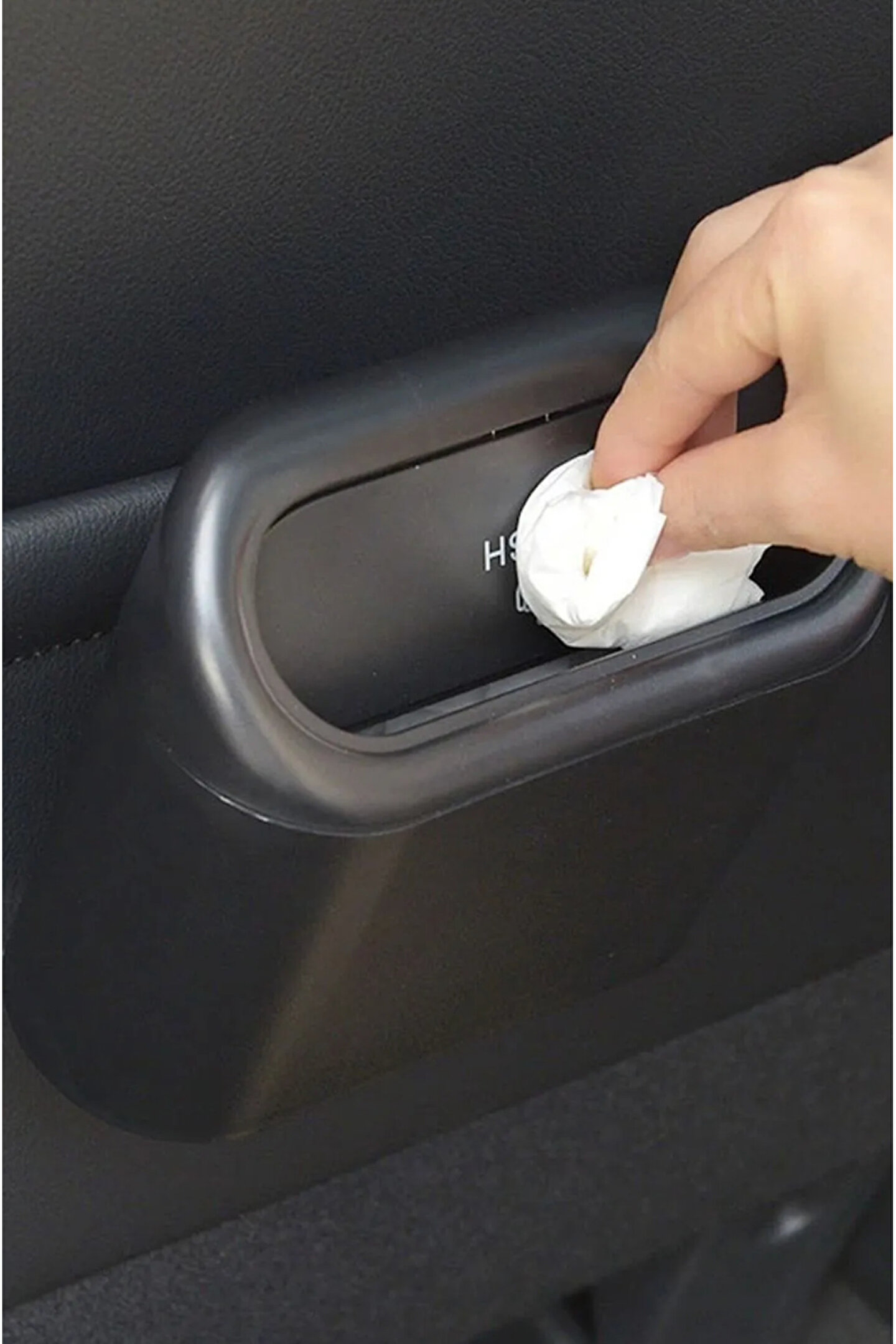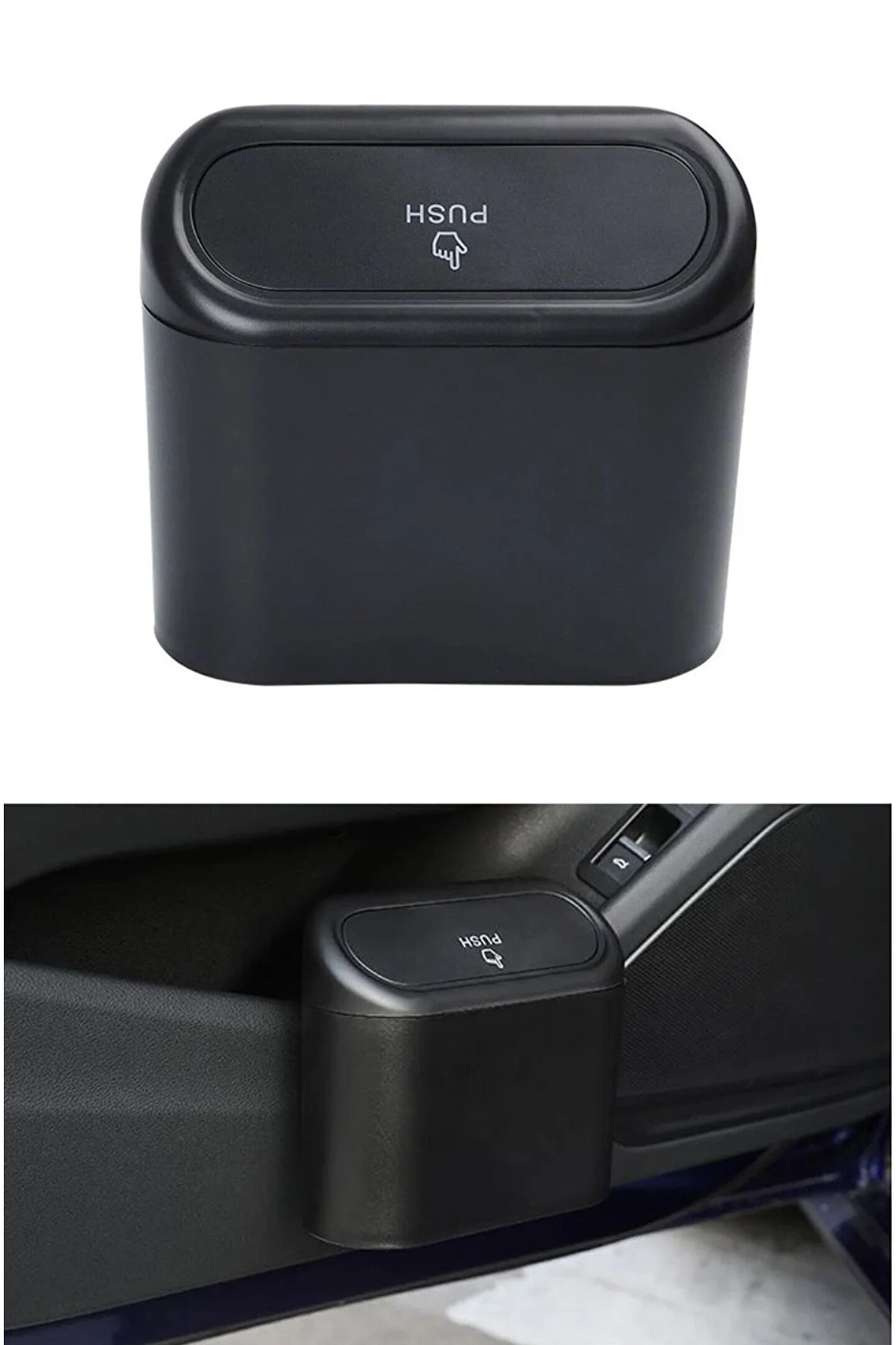 PlusOto Araba Çöp Kutusu Siyah Portatif Araç İçi Taşınabilir Kapaklı Organizer Çöp Kovası