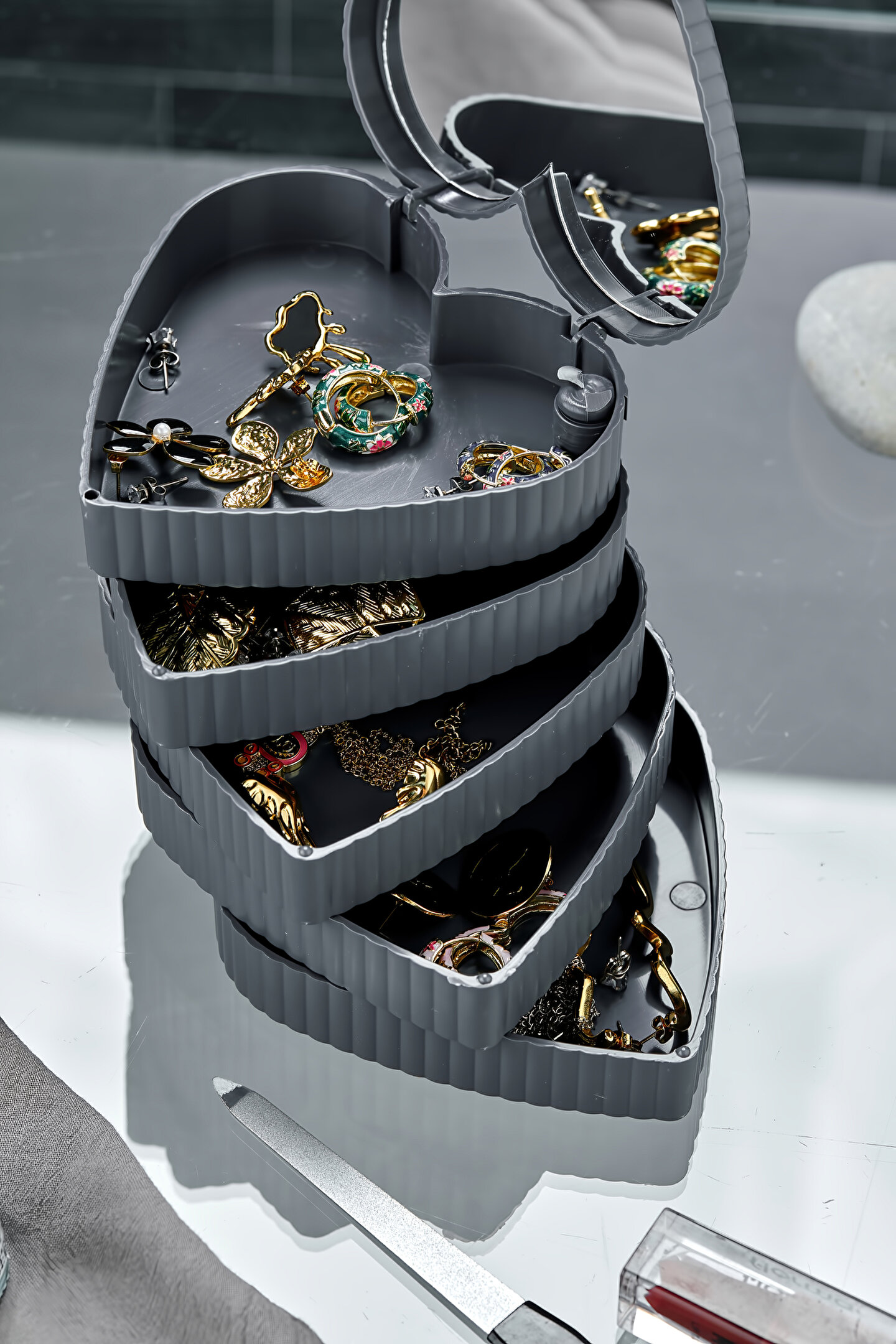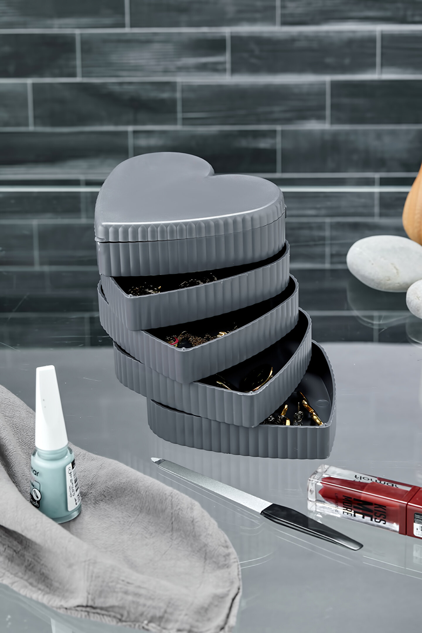 Mücevher, takı ve aksesuarlarınız için ideal saklama çözümü sunar; düzenli ve şık bir görünüm sağlar; Akrilik materyali sayesinde dayanıklı ve uzun ömürlü kullanım vaat eder; Tek parça halinde gelen bu organizer, kolayca monte edilebilir ve pratik bir şekilde kullanılabilir;