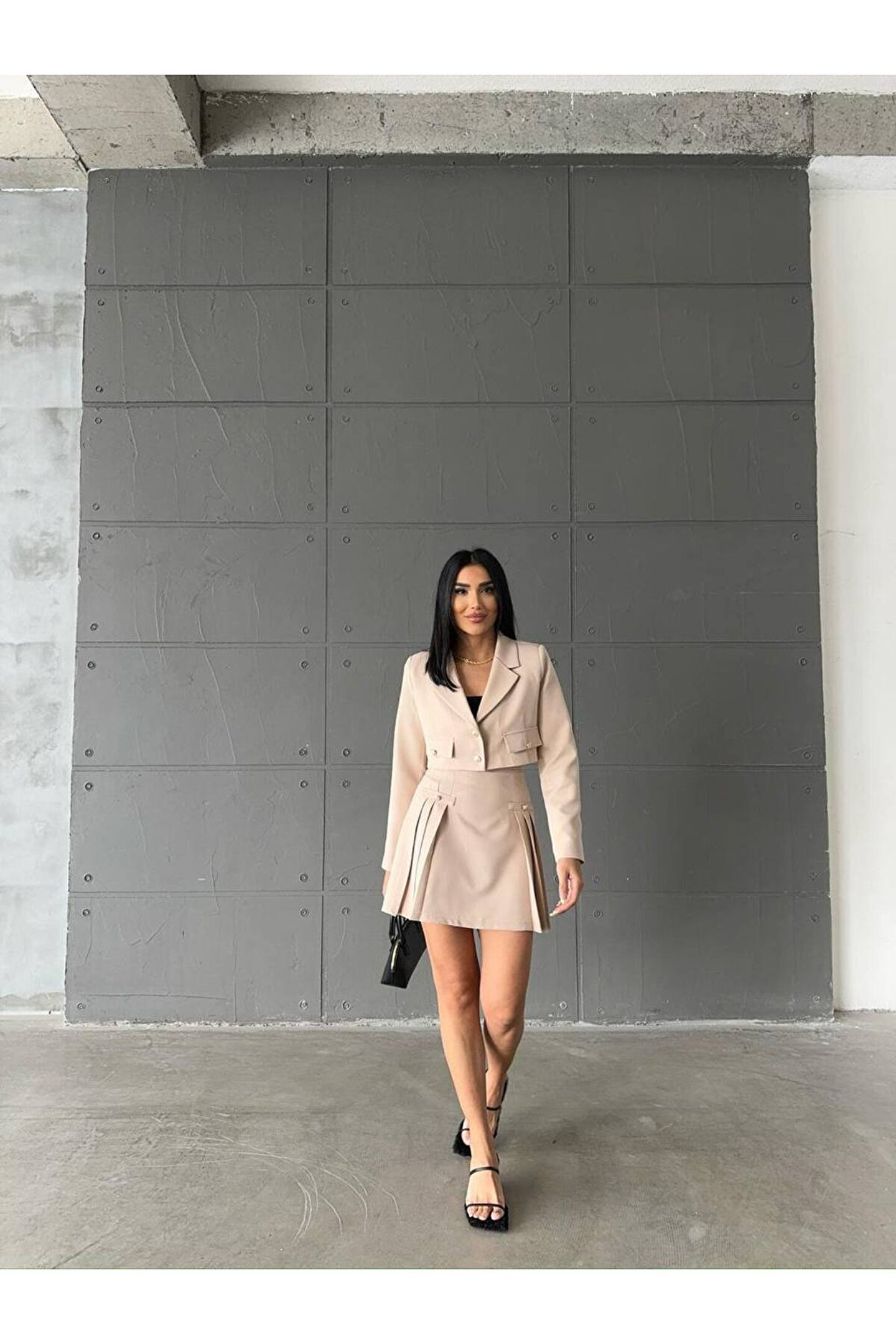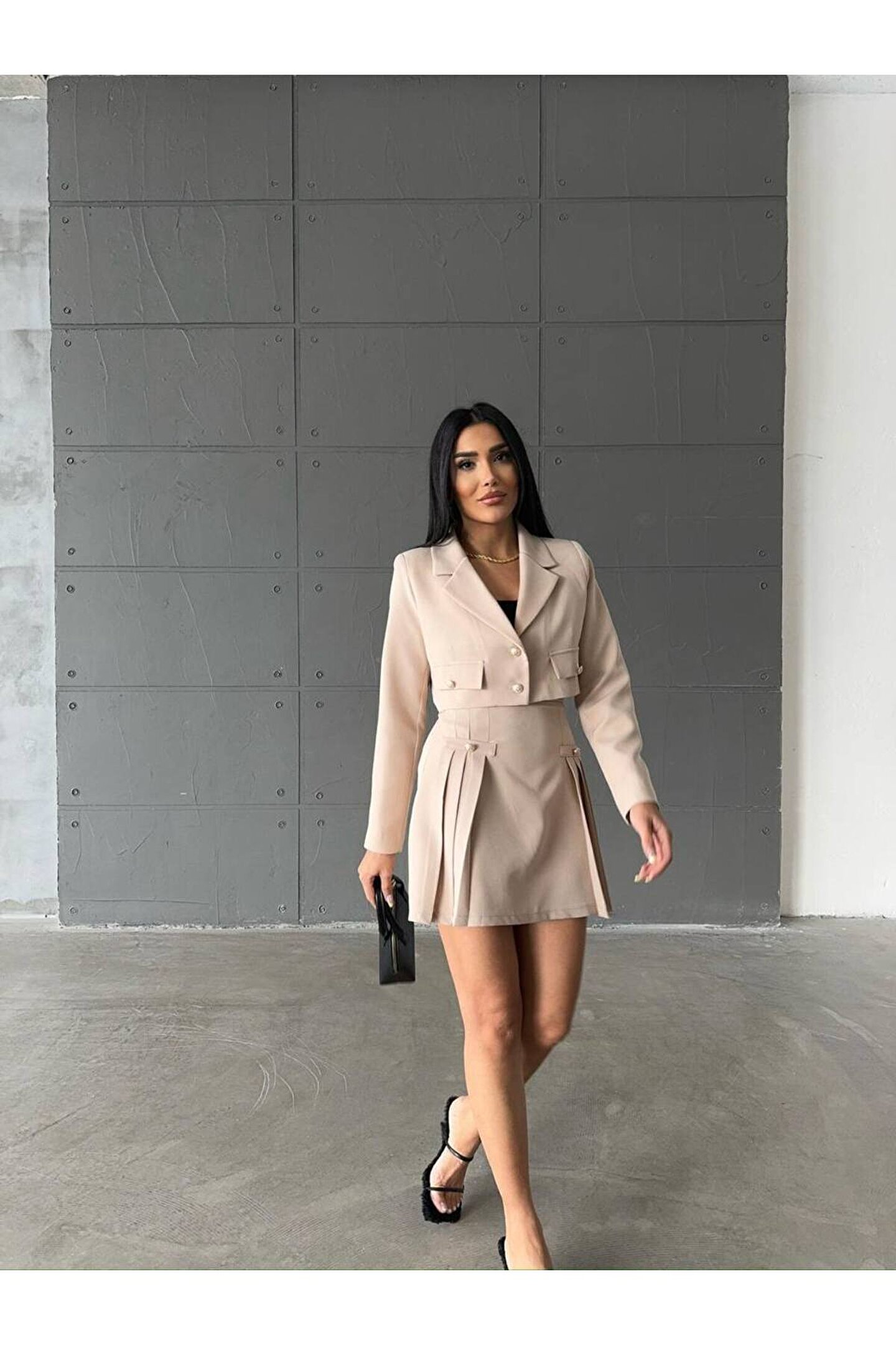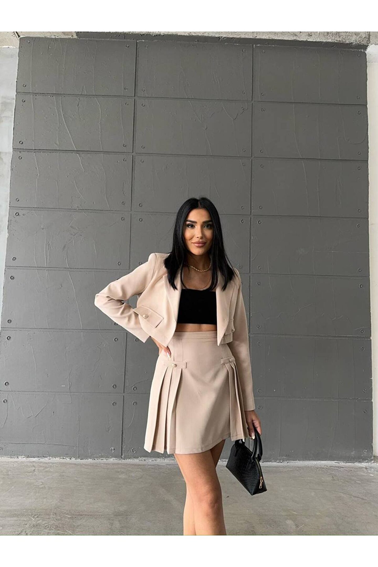 Modern ve şık tasarımıyla dikkat çeken Atlas kumaştan üretilmiş crop ceket, pileli etekle tamamlanan bu takım, genç ve dinamik tarzınızı yansıtmanız için idealdir.; Slim kalıp sayesinde vücut hatlarınıza mükemmel uyum sağlayarak feminen siluetinizi ön plana çıkarır.; Crop ceketin kısa boy tasarımı, modern ve trend bir görünüm kazandırırken, pileli eteğin hareketliliğiyle kombinlerinizde canlı bir etki yaratır.; Dokuma kumaşı sayesinde dayanıklı ve kaliteli malzeme kullanımı, uzun süreli kullanım için idealdir.; Her yaş grubuna hitap eden geniş yaş aralığına sahip olan bu takım, gençlerin enerjik ruhunu yansıtırken aynı zamanda tüm yaş gruplarına da uyum sağlayarak geniş bir kullanıcı kitlesi sunar.;