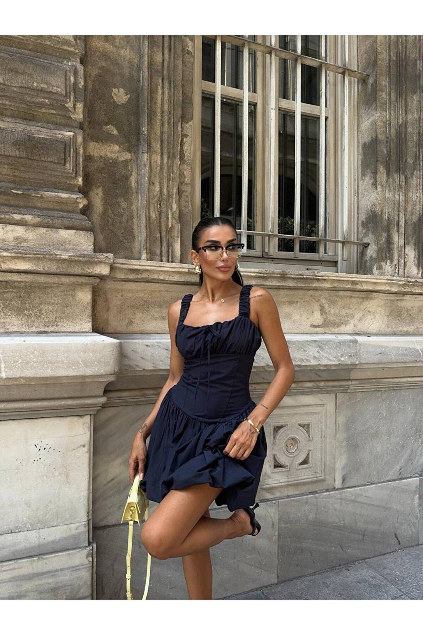 Zarif kare yaka tasarımı ile dikkat çeken bu elbise, genç ve dinamik bir stil sunar; Poplin kumaşın rahatlığı ve dayanıklılığı, günlük kullanım için idealdir; Askılı kol tasarımı sayesinde yaz aylarında serinlik ve konfor sağlar; Mini boy kesimiyle modern ve şık bir görünüm kazandırırken, balon silueti hareket özgürlüğü sunar; Beline oturan kalıbı ile vücut hatlarını zarifçe sararak feminen bir duruş sergiler; Her yaş grubuna hitap eden tasarımıyla geniş bir kullanıcı yelpazesine sahiptir;