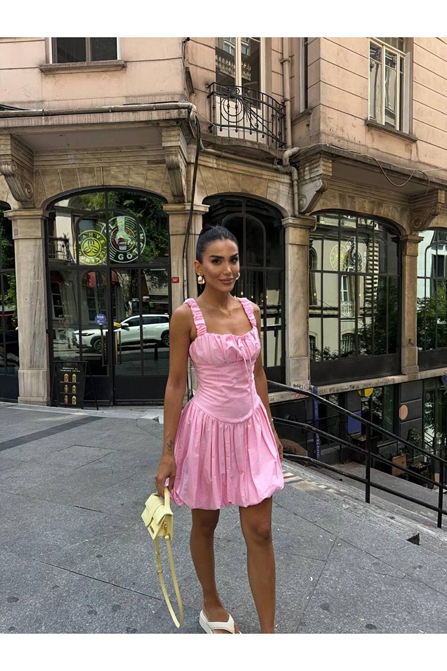 - Poplin kumaşın rahat dokusu ve dayanıklılığı ile öne çıkan bu elbise, günlük kullanımda konforlu bir deneyim sunar; - Kare yaka tasarımı ile modern ve şık bir görünüm kazandırırken, askılı yapısı omuzları rahatça sergilemenizi sağlar; - Balon silueti sayesinde hareket özgürlüğünüzü kısıtlamadan feminen bir duruş sergiler; - Bele oturan kalıbı ile vücut hatlarınıza mükemmel uyum sağlayarak zarif bir siluet oluşturur; - Mini boyu ile genç ve dinamik bir stil vadederek her yaş grubuna hitap eder; - Düz tasarımıyla sadelikten yana olanların tercihi olup, kombin yapmayı kolaylaştırır;